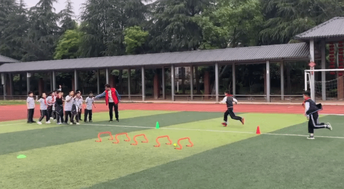 课程的高潮出现在团队接力赛环节,学生被分为两支队伍展开激烈角逐。小选手们如离弦之箭般奋力奔跑,将路障放在终点处后折返,与下一位蓄势待发的学生交接,场边,未轮次上场的学生自发组成啦啦队,此起彼伏的加油声将活动推向高潮。这场比拼不仅考验体能,更让团结协作的种子扎根于孩子们心中。活动最后,全体师生在健康管理学院的旗帜前合影留念,记录下这份充满汗水与欢笑的成长记忆。