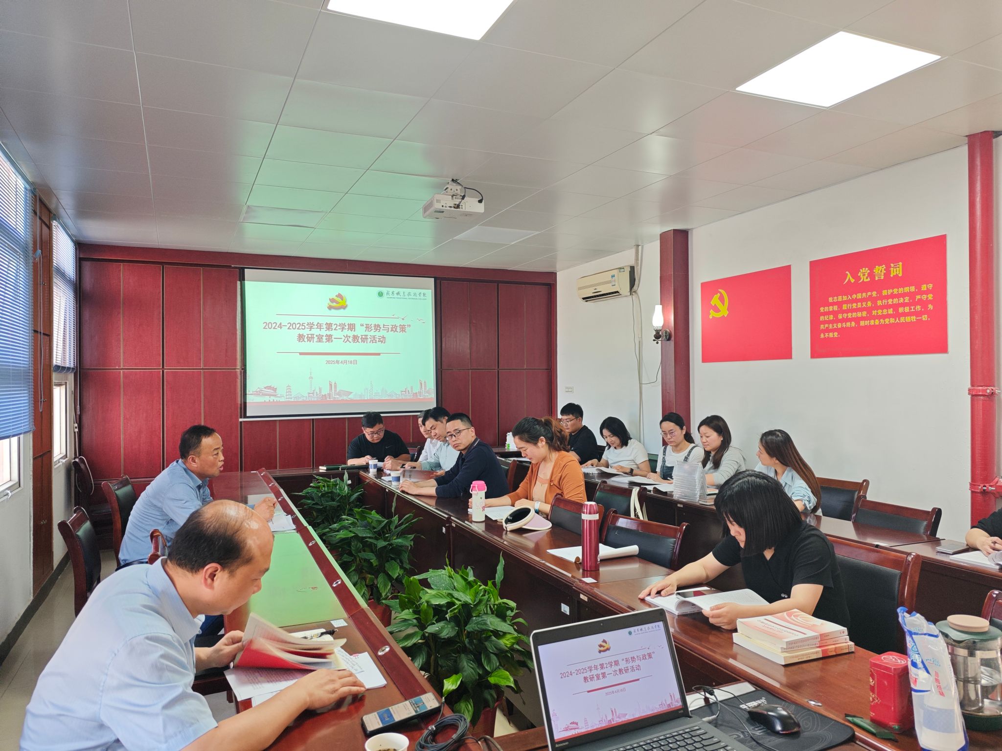 为深入贯彻落实省教育厅关于课程建设与教学改革的相关要求,进一步提升《形势与政策》课程教学质量,2025年4月18日下午,马克思主义学院组织召开《形势与政策》课程专题教研会议。会议由教研室主任常卫峰主持,教学副院长王翔、全体课程任课教师及相关教学管理人员参会,围绕课程诊改、教学创新与平台建设展开深入研讨。