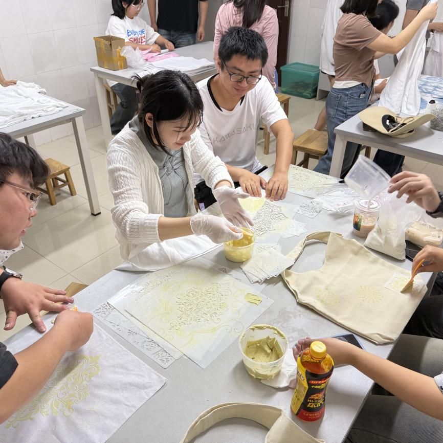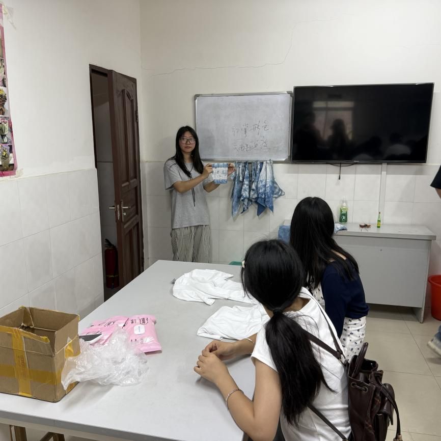 为深入贯彻落实习近平总书记关于传承弘扬中华优秀传统文化的重要指示精神,生物工程学院“七彩树”园艺协会于4月26日在生物基地组培楼组织开展焕“染”一新·非遗扎染体验活动。本次活动以“党建引领团建,文化赋能实践”为核心理念,通过理论讲授与实践操作相结合的方式,引导全校50名学生在扎染技艺的传承中厚植文化自信,深化“党建带团建”工作机制的育人实效。