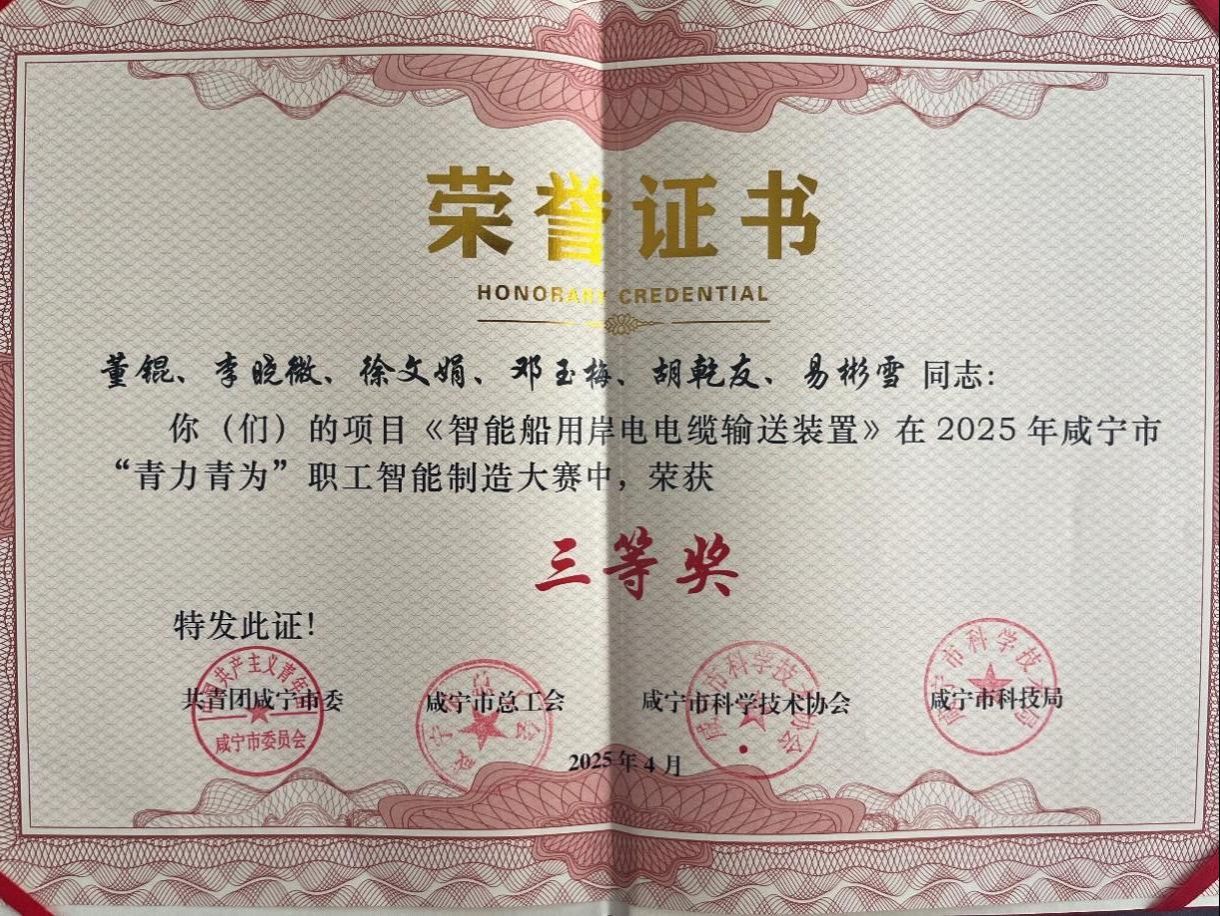 近日,由咸宁市团委联合咸宁市总工会、咸宁市科学技术协会、咸宁市科技局主办的咸宁市“青力青为”职工智能制造大赛决赛在咸宁市青少年宫成功举行,我院董锟、李晓微、徐文娟、邓玉梅荣获三等奖。