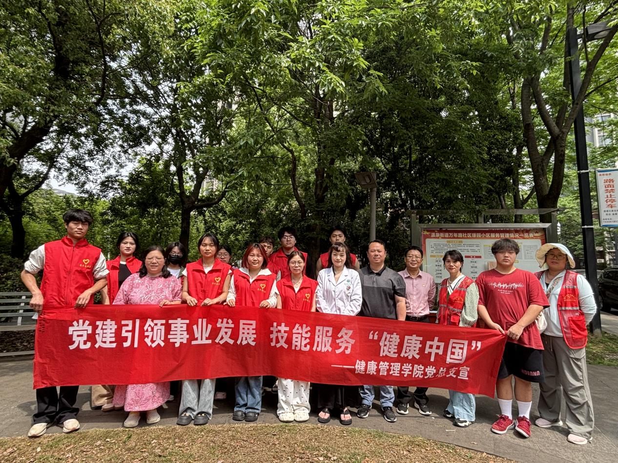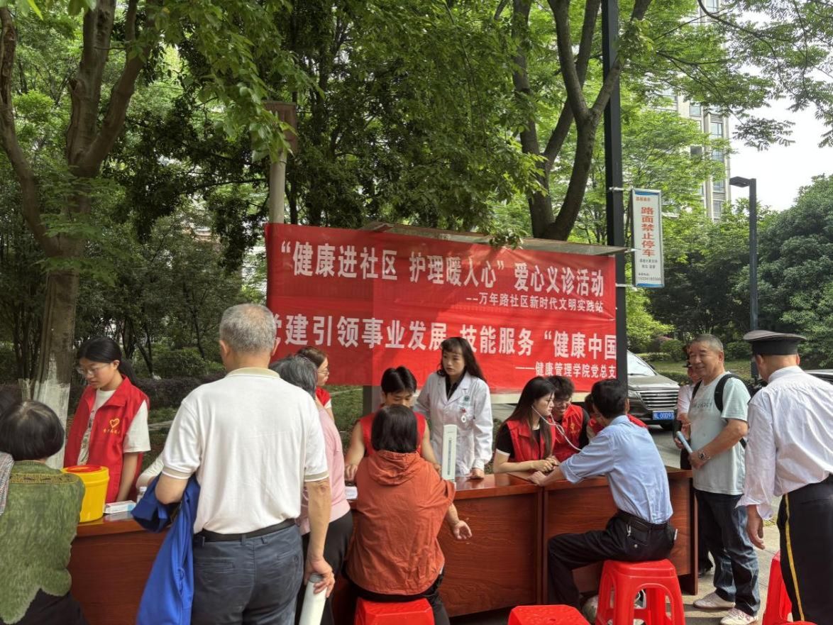 为贯彻落实"健康中国"战略,4月20日上午,健康管理学院党总支以深化“专业服务社会”理念为行动抓手,联合万年路社区党委在璟园小区开展卫生健康科普服务活动,使健康知识普及和健康生活方式真正融入社区治理和居民日常生活。参加本次活动的有健康管理学院党总支书记黄晓东,护理教研室主任程海涛,专任教师陈瑶、何苗苗及护理、康复治疗技术专业11名学生志愿者。