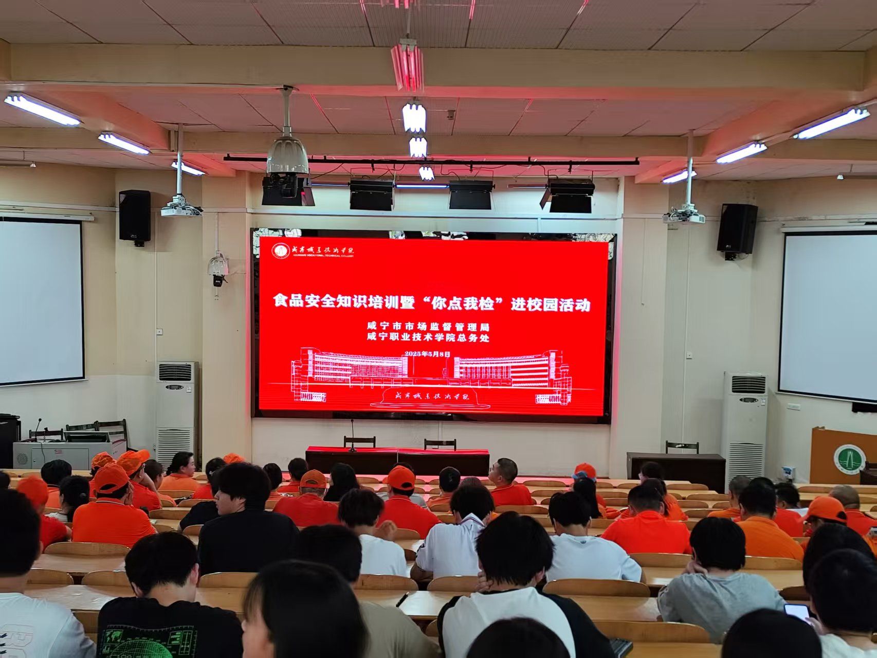 为全面提升校园食品安全管理水平,筑牢师生饮食安全防线,2025年5月8日我校联合咸宁市市场监督管理局举办了“崇尚健康饮食理念托举幸福美好生活”活动,特邀市市场监管局食品卫生专家乐园授课,总务处餐饮管理中心、食堂从业人员、学生代表等300余人参加本次培训。通过理论培训与现场实践相结合的方式,推动校园食品安全共治共享。
