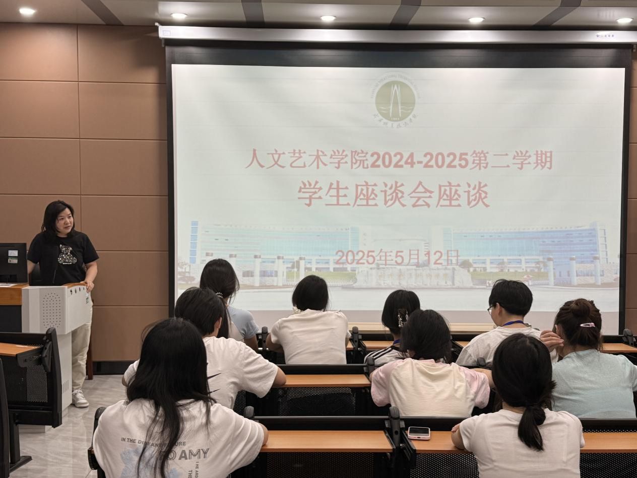 2025年5月12日晚19时,人文艺术学院在教育实训中心101教室组织召开2024-2025学年第二学期教学信息员座谈会。教务科长刘飞兰、全体在校班级教学信息员及督学部干部参加会议,共同围绕“畅通反馈渠道,优化教学服务”主题展开深度交流。