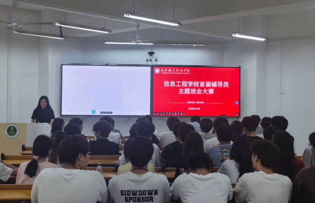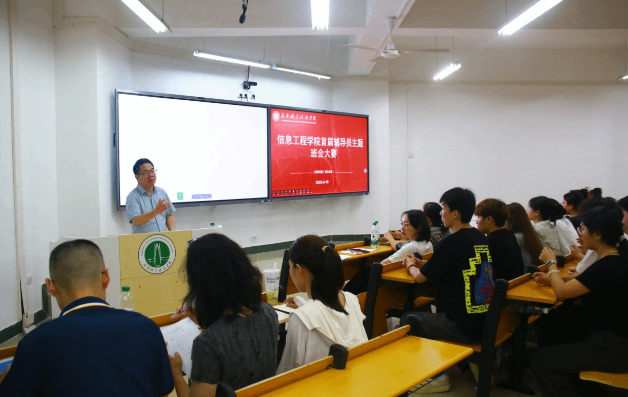 为提升辅导员职业能力,加强班级管理,开展丰富多彩班级活动,2025年5月18日,信息工程学院在励志楼403教室举办“青春领航,共筑成长”辅导员主题班会大赛。