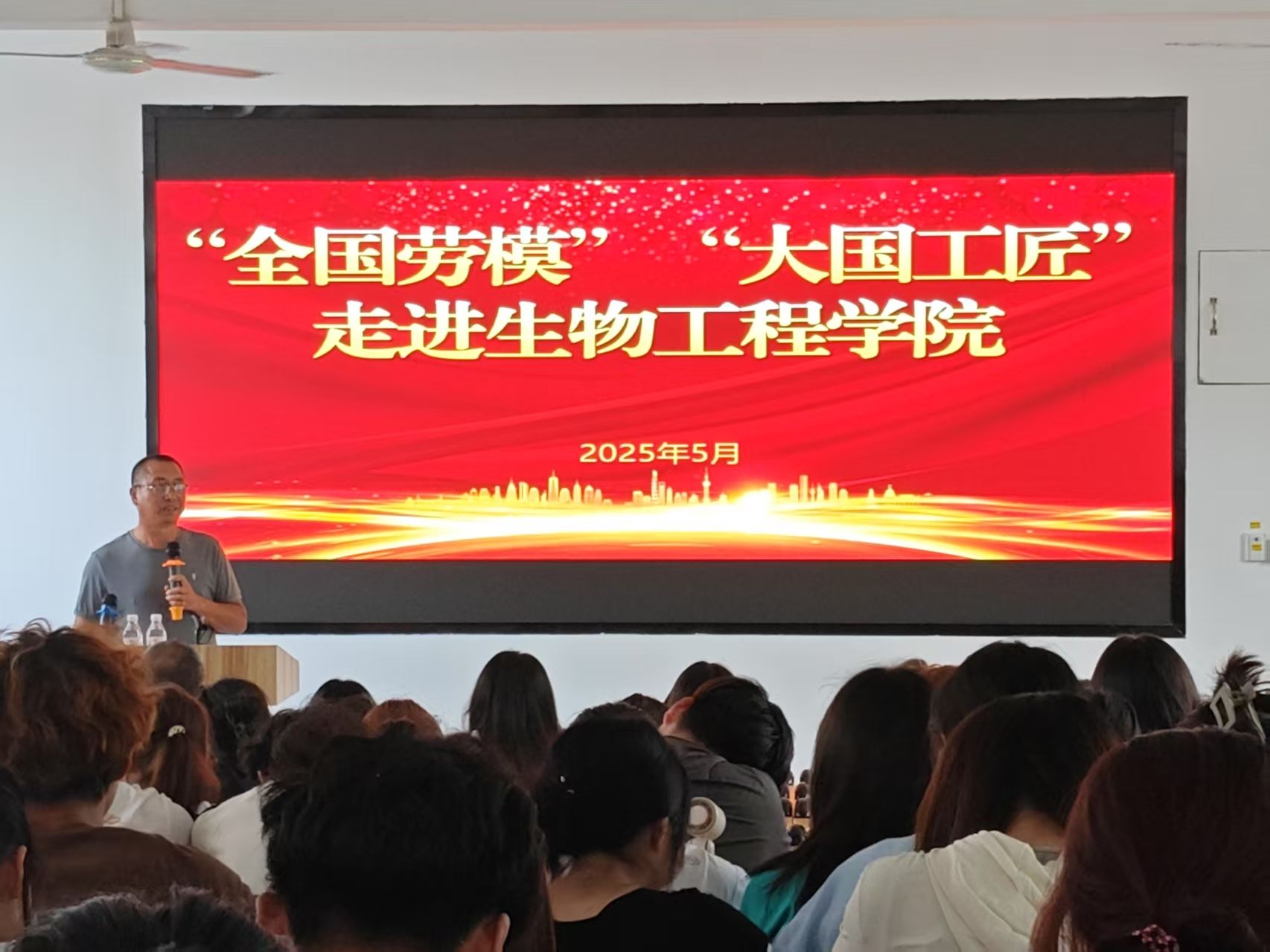 活动伊始,生物工程学院院长万海峰博士发表了热情洋溢的致辞。他强调,在当今时代,劳模精神工匠精神对于培养高素质技能人才、推动社会进步具有至关重要的作用。此次邀请全国劳模、大国工匠走进校园,旨在让师生们近距离感受工匠精神的内涵,激发同学们对技能学习的热情,为未来的职业发展奠定坚实的基础。