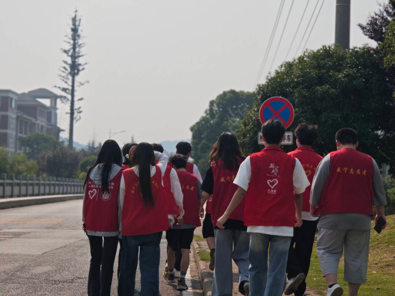活动当日清晨8点,学生们齐聚我校文华楼前,举行简短而热烈的启动仪式。在志愿者的指导下,大家迅速打开腾讯公益“一块走”小程序,完成个人运动数据绑定。随着一声令下,队伍从文华楼出发,沿着规划路线前往南门,正式开启公益之旅。步行途中,学生们在享受运动快乐的同时,还主动投身环保行动,手持垃圾袋捡拾路边垃圾,以实际行动为美化环境贡献力量,引得沿途行人纷纷投来赞许的目光。