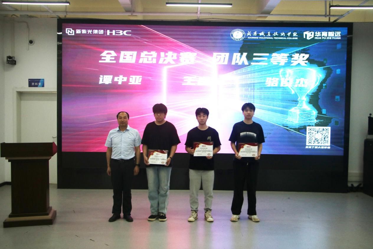 2025年5月28日,信息工程学院联合新华三集团、湖北华育智远信息科技有限公司,在咸宁市新产业公共实训基地虚拟仿真实训中心203多功能厅举办第十四届“新华三杯”全国大学生数字技术大赛颁奖仪式,副院长尹光辉、湖北华育智远信息科技有限公司校企合作部总监王文杰等校企代表和计算机网络技术专业在校全体师生参加颁奖仪式。