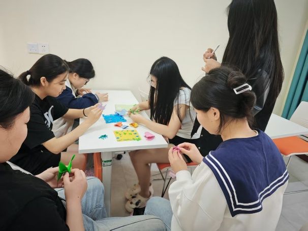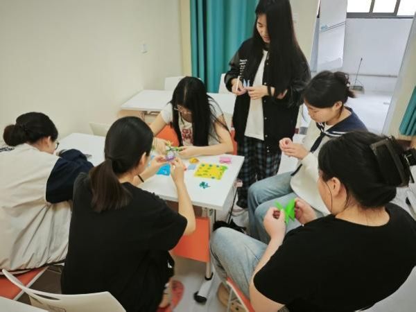活动在温馨的氛围中拉开序幕。何申婕通过现场演示剪纸技法,带领参与者感受“一剪一纸”间的匠心之美。技巧讲解环节中,同学们积极交流剪纸心得,沉浸式体验了传统技艺的精妙。随后的“文化猜谜”互动中,一幅幅剪纸作品背后的地域文化故事被逐一解读,参与者通过作品触摸历史的温度,领悟剪纸作为文化载体的独特魅力。活动现场互动热烈,大家共同完成了“瑞雪丰年”“千纸鹤”等创意剪纸及折纸作品,用指尖艺术传递对传统文化的热爱。