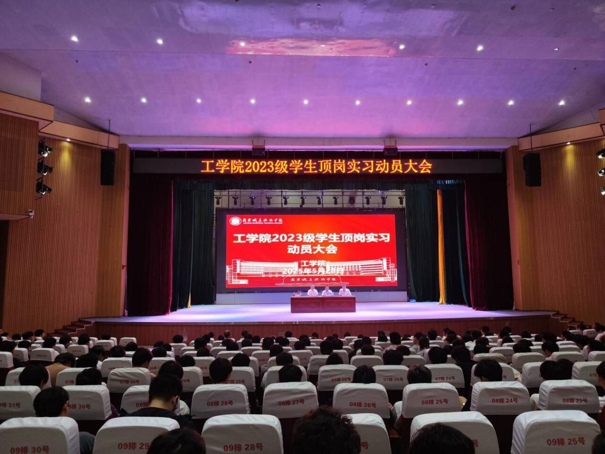 5月28日下午,工学院2023级学生顶岗实习动员大会在学校科学会堂举行。工学院院长吴涛、副院长杨彦伟、副书记许维林出席会议,23级全体在校学生及教职工参会。会议由杨彦伟主持。