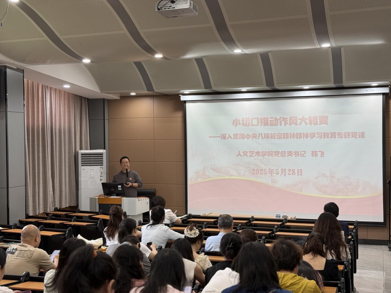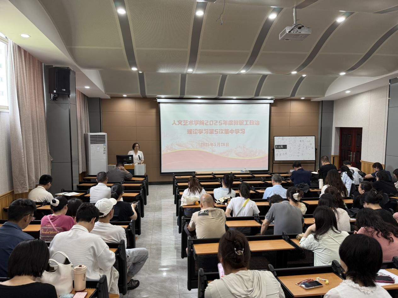 为深入贯彻落实习近平新时代中国特色社会主义思想,全面推进深入贯彻中央八项规定精神学习教育,切实将党建工作与业务知识学习深度融合,5月28日下午,人文艺术学院在教育实训中心101举行2025年度第五次教职工政治理论集中学习。会议由党总支书记韩飞主持,学院全体教职工参加。