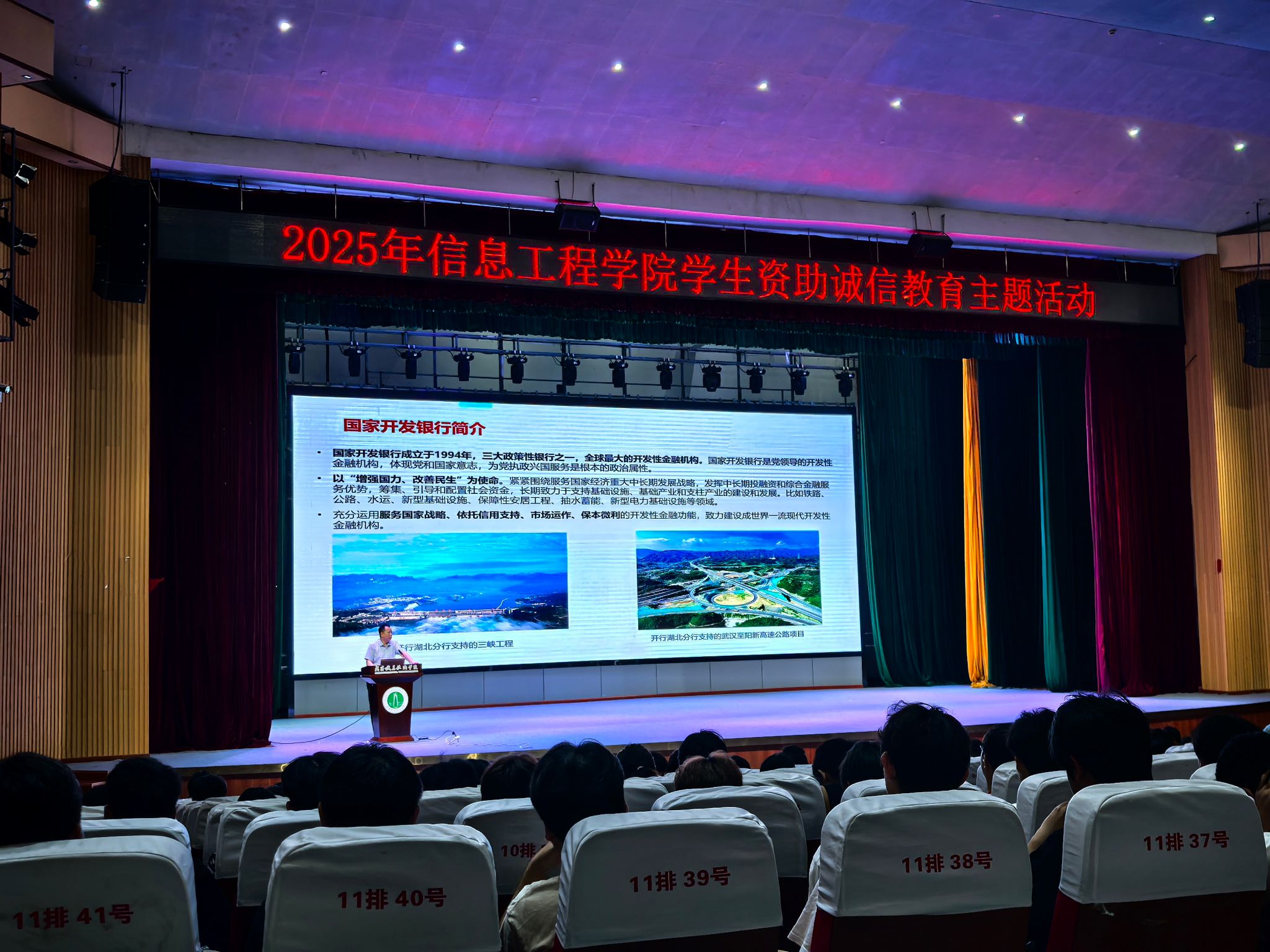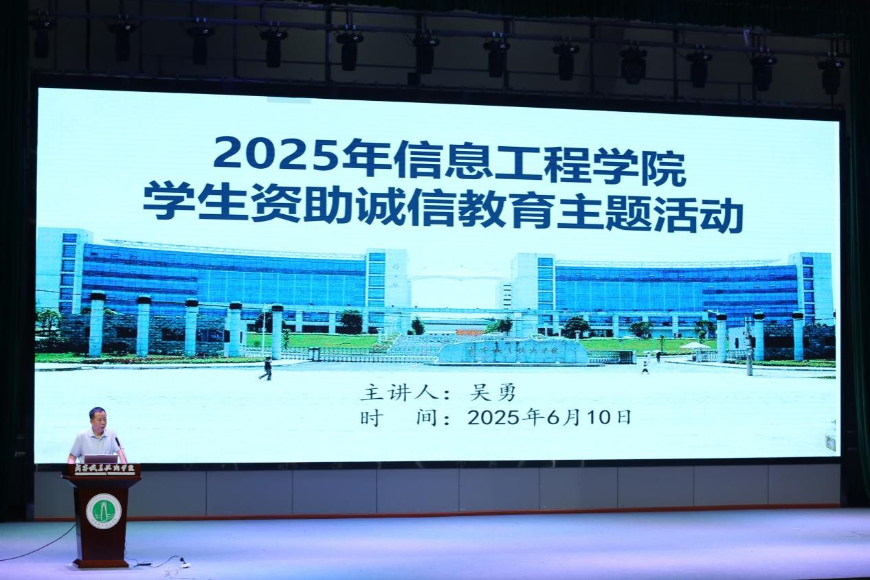 2025年6月11日下午,信息工程学院在科学会堂举行“学生资助、诚信教育”主题活动,学生科科长吴勇主持仪式,2024级辅导员和890名同学参加活动。
