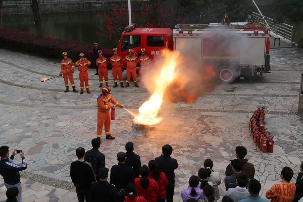 会议观看了近期全国及咸安区火灾视频案例,徐天勇结合火灾事故案例深入浅出,用通俗易懂的语言,剖析火灾事故成因,讲解消防专业的理论知识和基本实操知识,特别讲解了学生宿舍、经营店铺的用火用电安全知识,如何预防火灾事故,如何扑救初期火灾,火场逃生自救方法等。消防安全知识授课后,消防官兵在大学生活动中心前为广大教职员工开展了灭火实操演练。