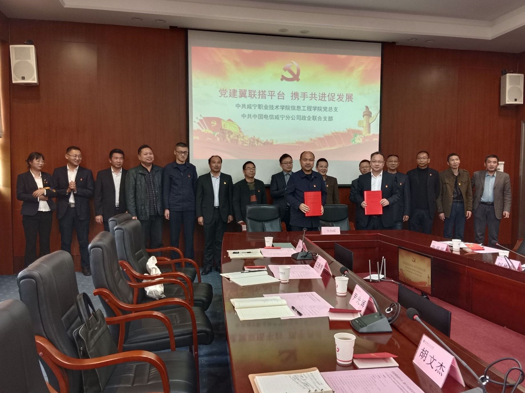 咸宁电信分公司是我市领先的综合智能信息服务运营商,是建设数字咸宁、维护网信安全的主力军、国家队,信息工程学院是咸宁信息技术人才的培养基地,双方表示,将继续在党建交流、专业共建、人才培养、人员互聘上加强合作,携手共进。
