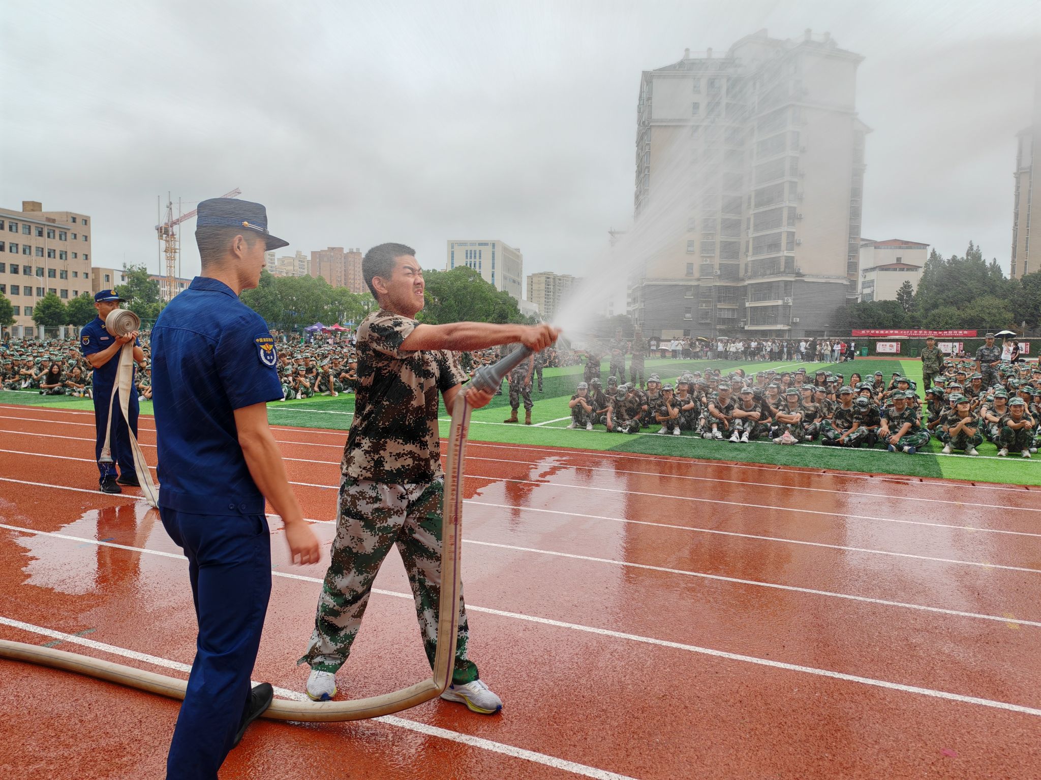 随着一阵阵急促的警报声响起,2023级新生应急疏散演练开始:在辅导员和保卫处工作人员的引导下,学生们一个个从宿舍楼里跑出,引导学生熟练掌握正确的逃生方法,迅速突破浓烟、高温环境,在规定时间内有序撤离,全面提高学生逃生自救能力。此外还采取消防救援大队官兵示范、学生参与、分组体验等方式,各院部以连队为单位组织新生代表到指定地点使用灭火器灭油盆火,努力增强学生处置初级火灾能力。