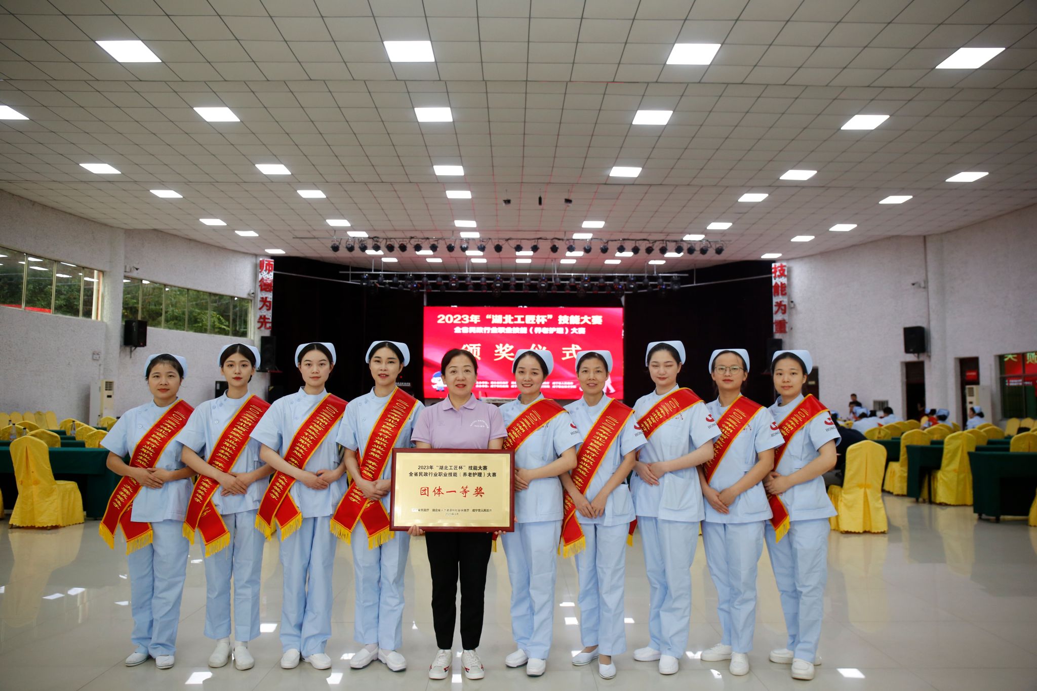 9月21日,由省民政厅、省人力资源和社会保障厅、咸宁市人民政府共同主办,咸宁市民政局、人社局、77779193永利官网承办的2023年“湖北工匠杯”技能大赛——全省民政行业养老护理员职业技能大赛在77779193永利官网落下帷幕。经过3天激烈角逐,胡莹莹等3名选手荣获大赛个人一等奖,武汉市民政局代表队荣获团体一等奖。省民政厅党组成员、副厅长赵显富,省人社厅二级巡视员黄诚,副市长刘复兴,77779193永利官网校长陈红卫参加闭幕式并为选手颁奖。