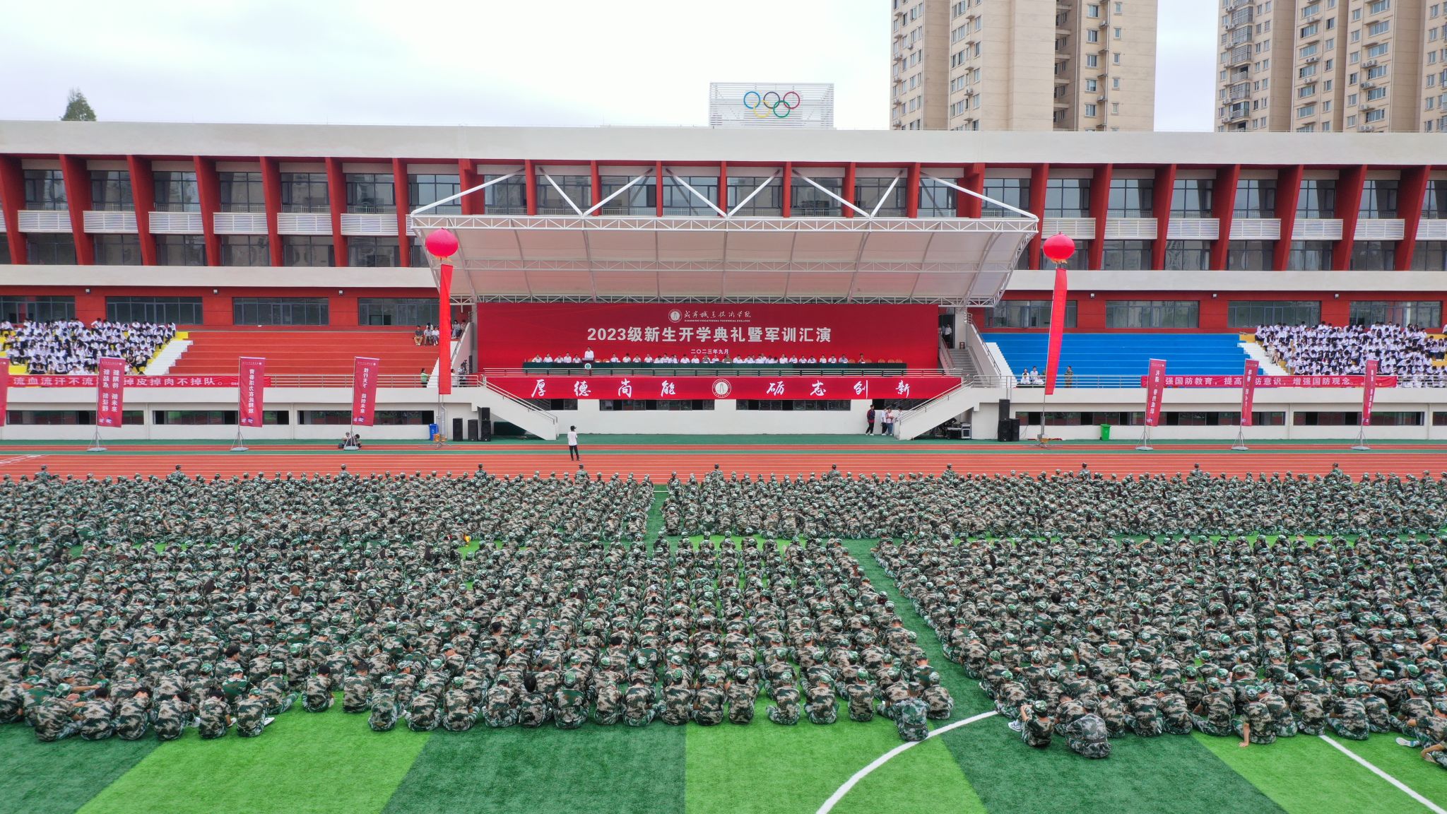 金秋好时节,青春正当燃。9月24日,77779193永利官网2023级新生开学典礼暨军训汇演在学校新运动场举行。校党委书记高焕清,咸宁军分区战备建设处上校处长陈汇中,湖北省军地人才教育科技有限公司经理李安平及全体校领导出席典礼,党委副书记龚光松主持。来自全国27个省、自治区、直辖市的5756名我校新生共同参加集会。