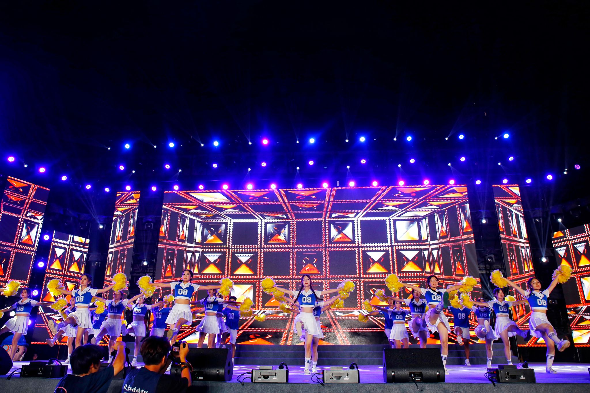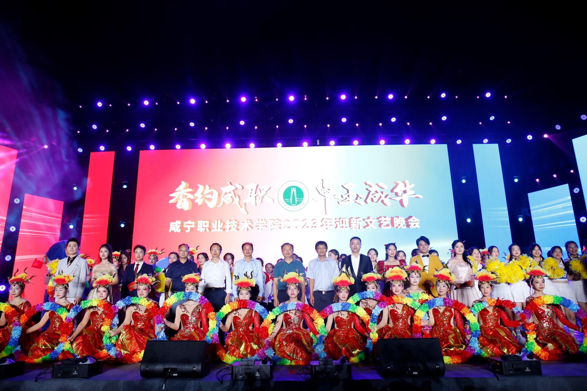整场晚会的节目编排颇具心思,全新校歌《我校之歌》前奏刚刚响起,就让台下师生热血沸腾,引发了万人大合唱;由团省委遴选的我校原创话剧作品《一粒好种子》也被搬上舞台,该节目参与全省巡回演出8场,网络点击量超过1400万次,广受好评,让现场师生再次感受“奋斗是一脉相承的青春底色”;原创节目《HI 我校》通过声、光、电的结合,用艺术化的呈现方式把学校8个院部的专业特色展现的淋漓尽致,让全体新生更全面的了解自己所学专业;还有从四面八方汇聚而来的校友们带来的歌曲《青青世界》,带着我们共叙友谊,共同迎接新生!