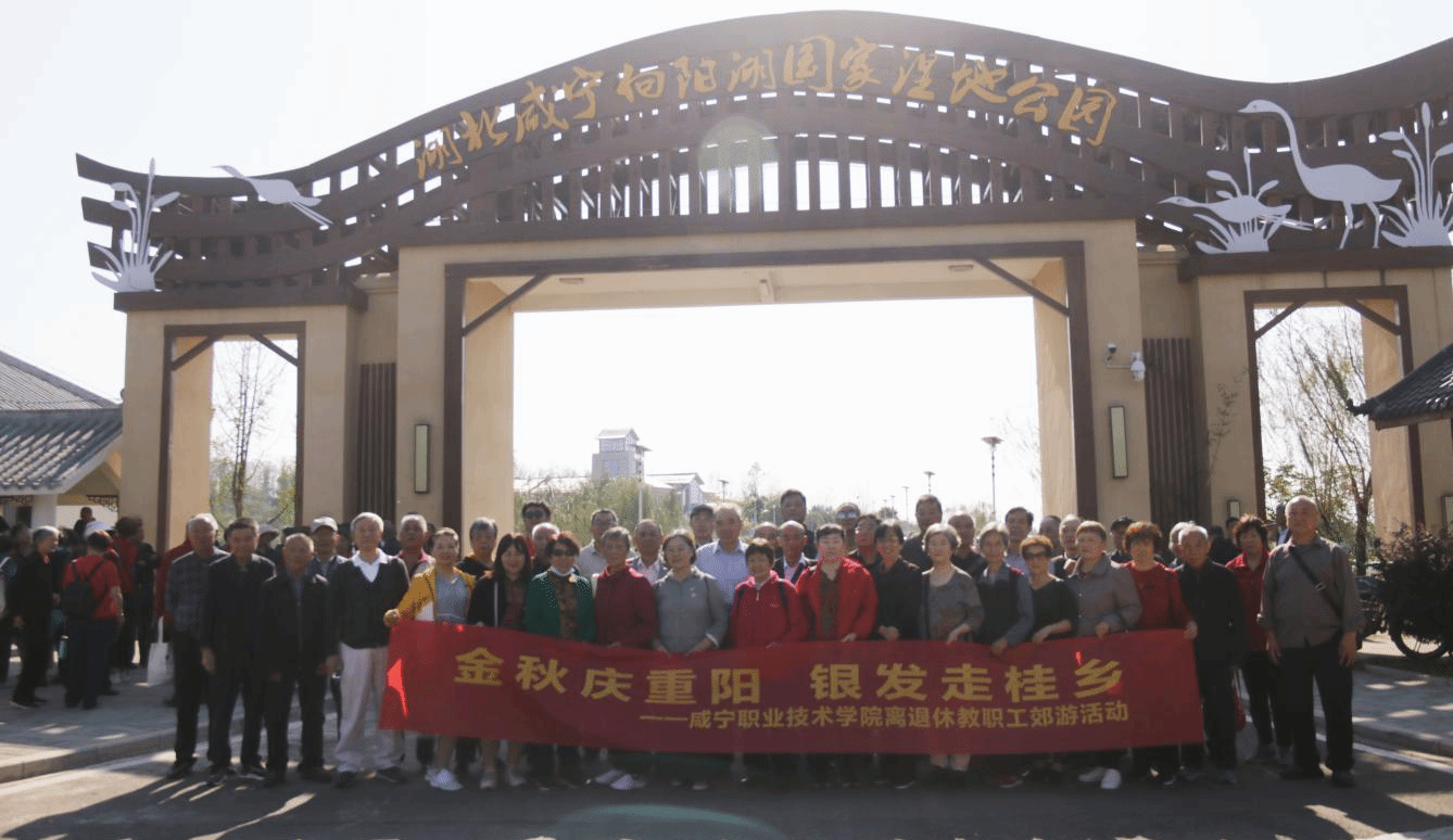 秋高气爽,云淡风轻。结束完参观,在离退休工作部门志愿者和医护人员的陪同下,开展了“金秋庆重阳、银发走桂乡”离退休职工秋游活动。在大巴上,老同志们个个精神饱满,脸上洋溢着快乐的笑容,秋游兴致十分高涨。大家彼此唠唠家常,谈谈时事,多年的同事、多年的好友欢聚一堂。游览期间,老同志们结伴同行,认真聆听志愿者的讲解,一行人先后游览了向阳湖湿地公园、五七干校等景点,有的老同志打卡留影,流连忘返;有的载歌载舞,留下了一路欢声笑语。
