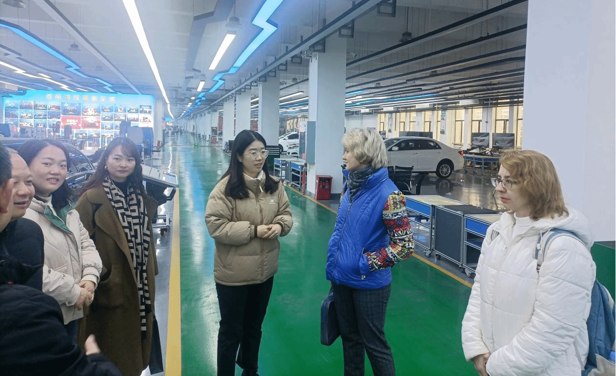 会后,尤利娅女士一行参观咸宁市新产业公共实训基地,深入课堂看望中俄合作办学班学生,与学生们进行了亲切交流,并与学生们合影留念。安娜将驻校两周,为中外合作办学项目机电一体化技术专业学生,讲授专业课程《机械制图与计算机绘图》。