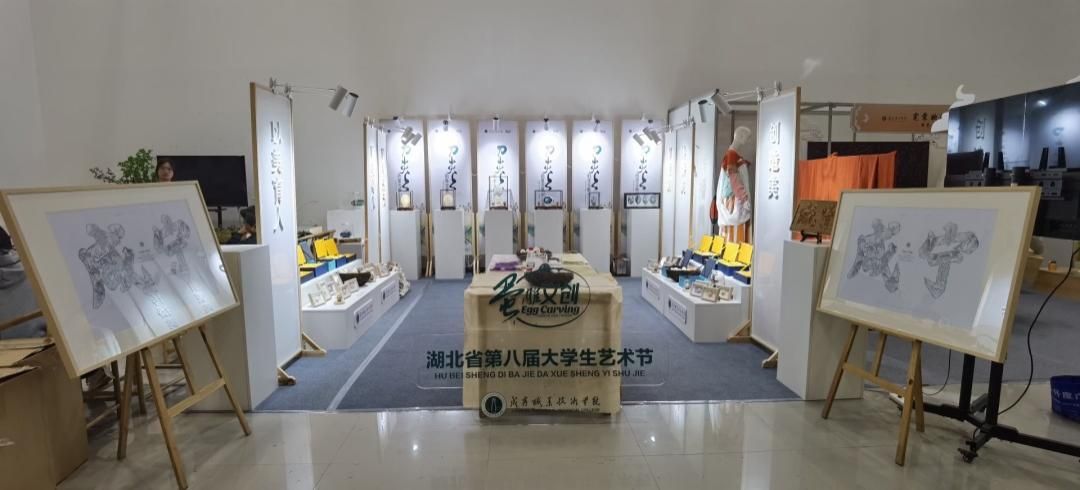 2023年12月7日—8日,由湖北省教育厅主办、中南民族大学承办的湖北省第八届大学生艺术节工作坊展示活动在中南民族大学美术馆隆重举行。来自全省89所高校181件作品参与此次评选,最后遴选出30件作品入围现场展示资格。人文艺术学院“刻刀有情——蛋雕文创工作坊”荣幸入展,并最终荣获一等奖。