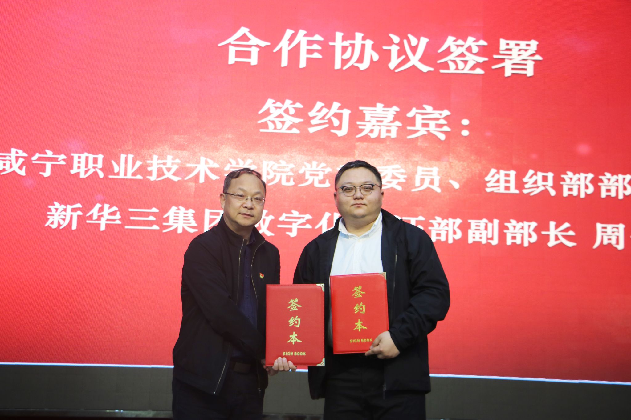 随后,校党委委员、组织部部长曾志与新华三集团数字化认证部副部长周子恒签署校企共建新华三ICT数字学院合作协议。