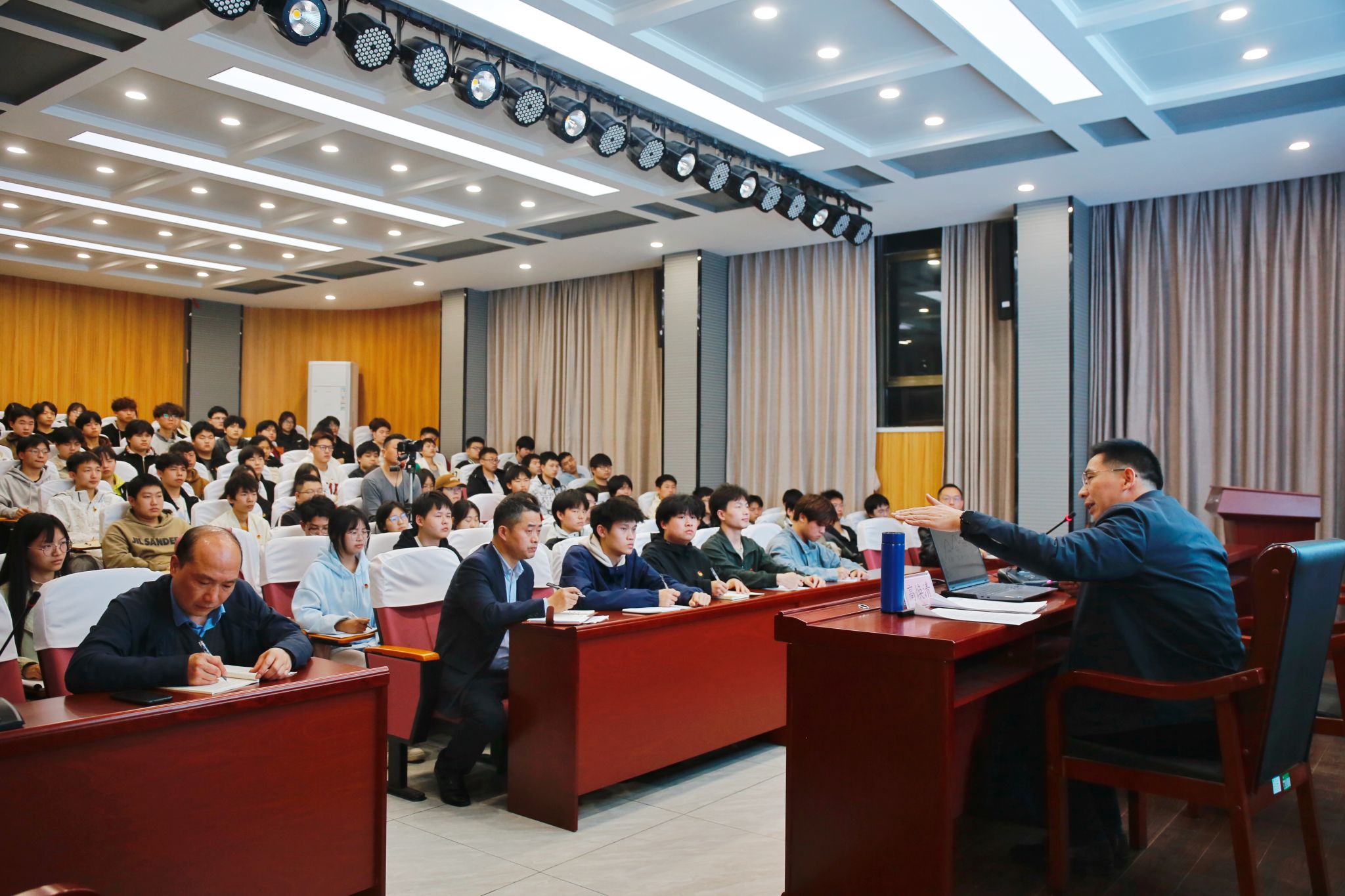 高焕清围绕全新图景,为人类实现现代化提供新的选择、立足国情,标注中国式现代化的鲜明特色、统筹兼顾,明确中国式现代化的本质要求、挺膺担当,为中国式现代化贡献青春力量等四个方面进行了深刻细致的讲解。就如何辩证处理个人职业规划与国家发展战略、专业技能与全面发展、学习与生活、心怀梦想与脚踏实地的关系,分享了自己的观点体会。