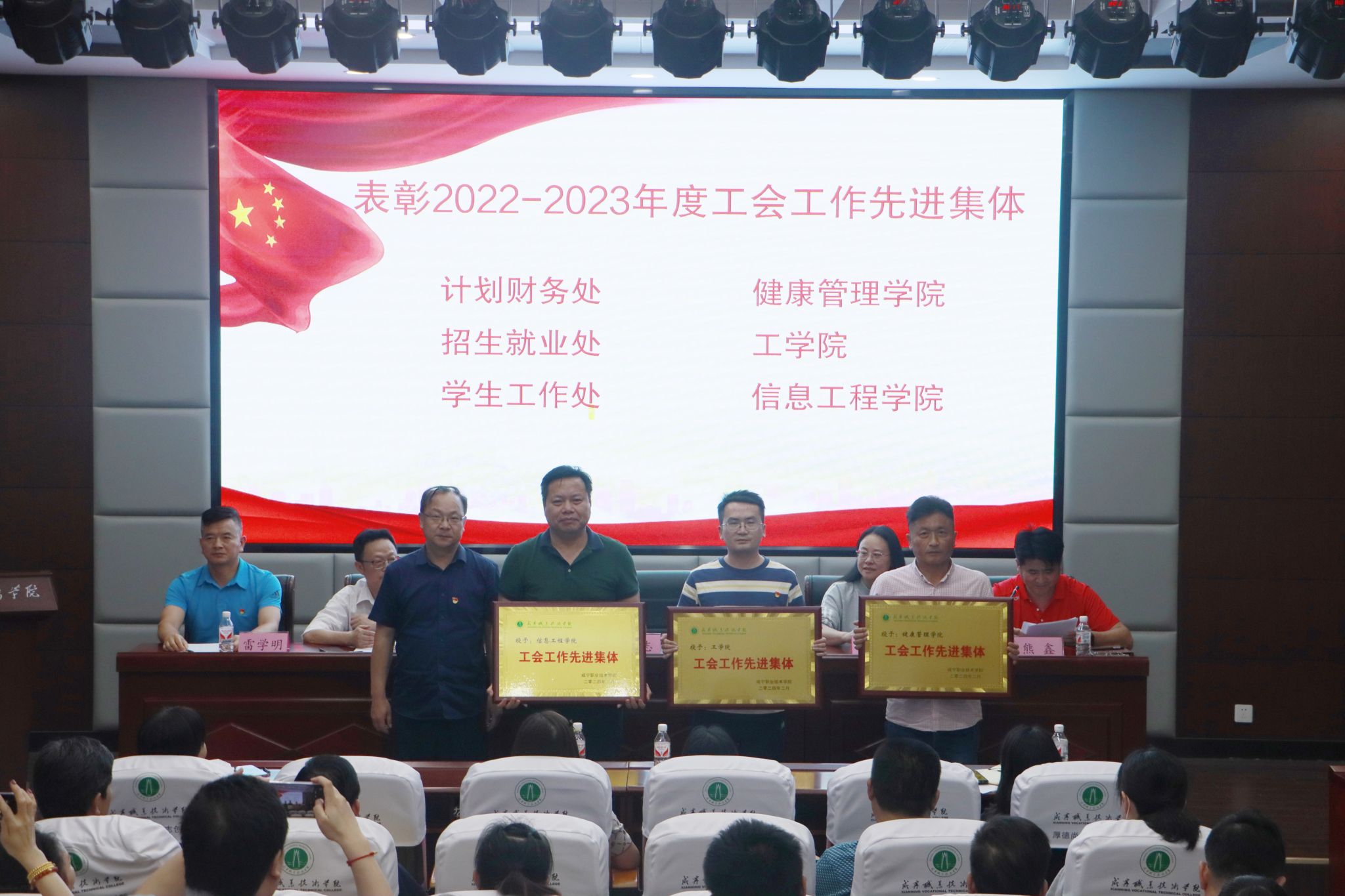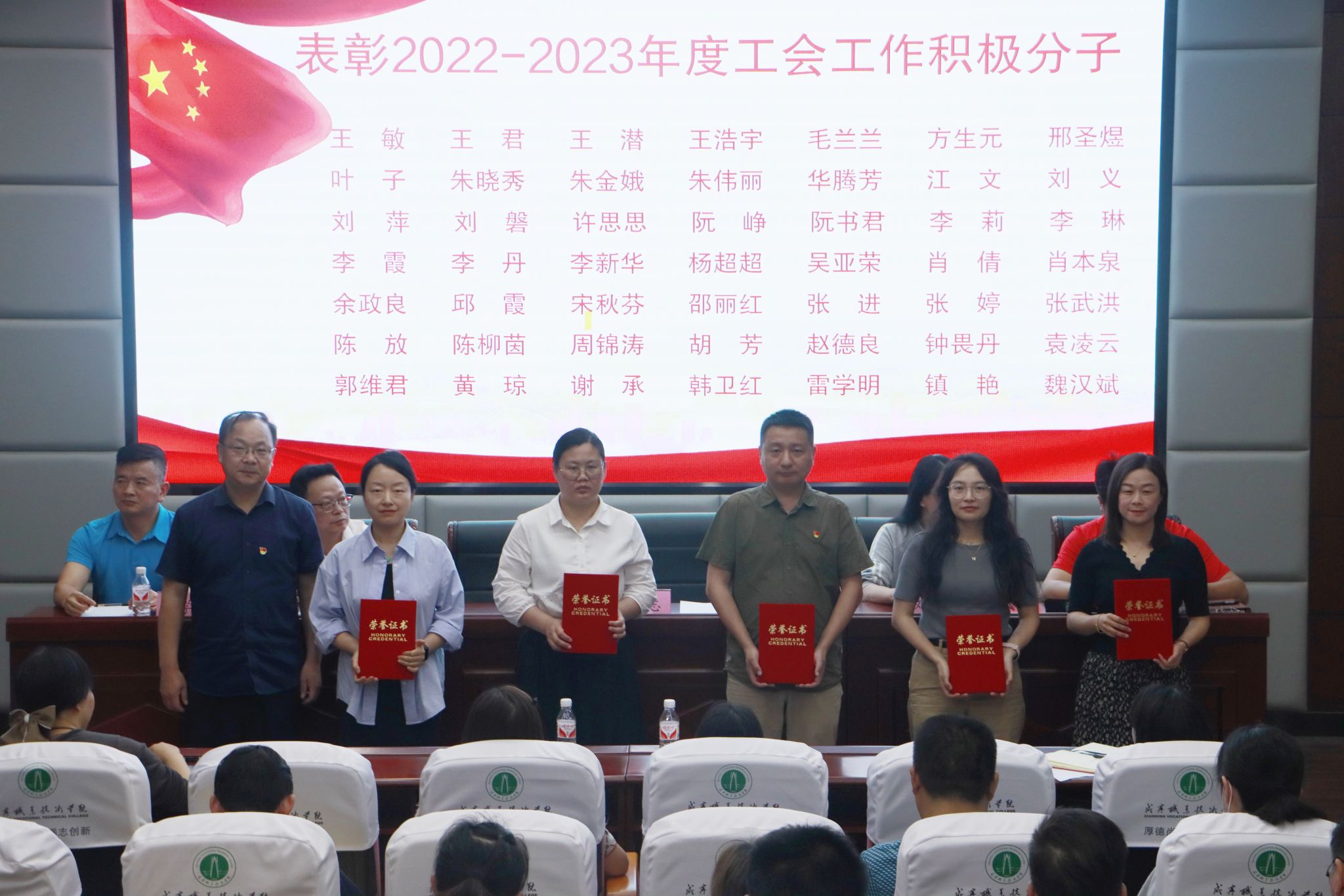 会议表彰2022-2023年度工会工作先进集体和工会工作积极分子。校党委委员、组织部部长曾志做了总结讲话。他首先向获表彰的先进集体和优秀个人表示祝贺,对学校各级工会组织近阶段开展的工作和取得的成绩表示肯定。他指出,校工会2023年获评咸宁市先进单位,争取了很多省市级项目和荣誉;各单位基层工作者在文体活动组织、困难帮扶慰问、福利发放等方面做了大量辛勤和细致的工作,为助力学校高质量发展起到了凝心聚力的重要作用。他强调,工会组织要始终坚持工会工作正确政治方向,强化教职工思想政治引领;要全力提升服务水平,更好发挥工会的桥梁与纽带作用;要不断加强自身建设,提高工会干部业务工作能力。