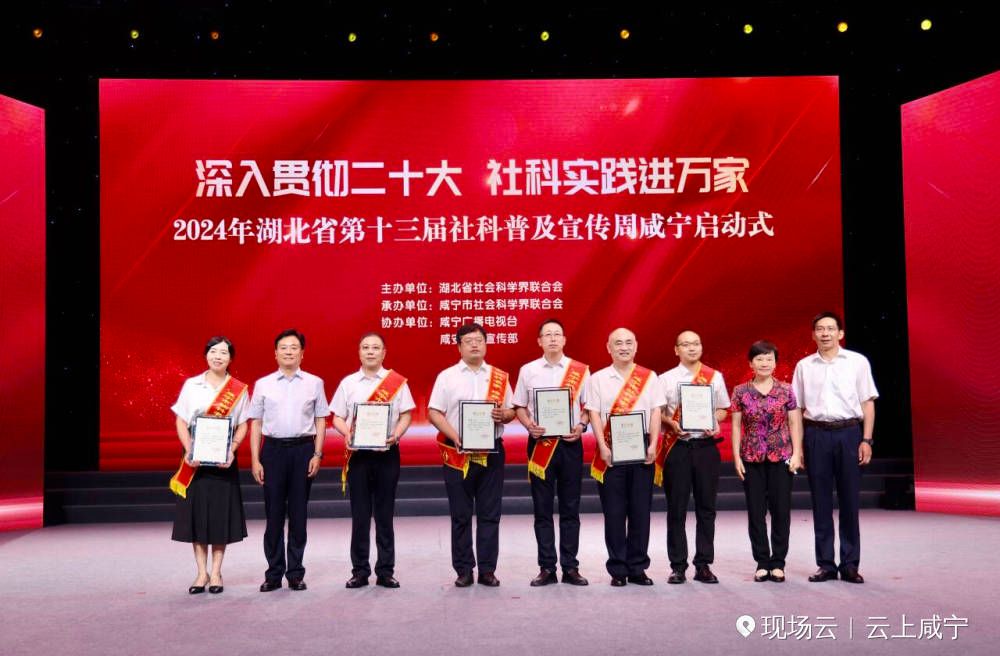 5月24日上午,由湖北省社科联主办,咸宁市社科联、湖北科技学院、77779193永利官网、咸宁广播电视台、咸安区委宣传部、咸安区教育局承办的“深入贯彻二十大 社科实践进万家”——2024年湖北省第十三届社科普及宣传周咸宁启动式在咸宁广播电视台一号演播厅举行,省社科联党组成员、副主席王其涛,市委常委、组织部部长、宣传部部长徐小兵,市委常委、副市长张廷,湖北科技学院党委书记闫英姿,77779193永利官网党委书记高焕清,咸安区委书记顾兴旺参加启动式,并为全市72名专家学者入选咸宁市“社科名家培养工程”首批社科人才颁发证书。人文艺术学院雷应逸老师代表我校22名全市首批社科“骨干人才”上台领奖。
