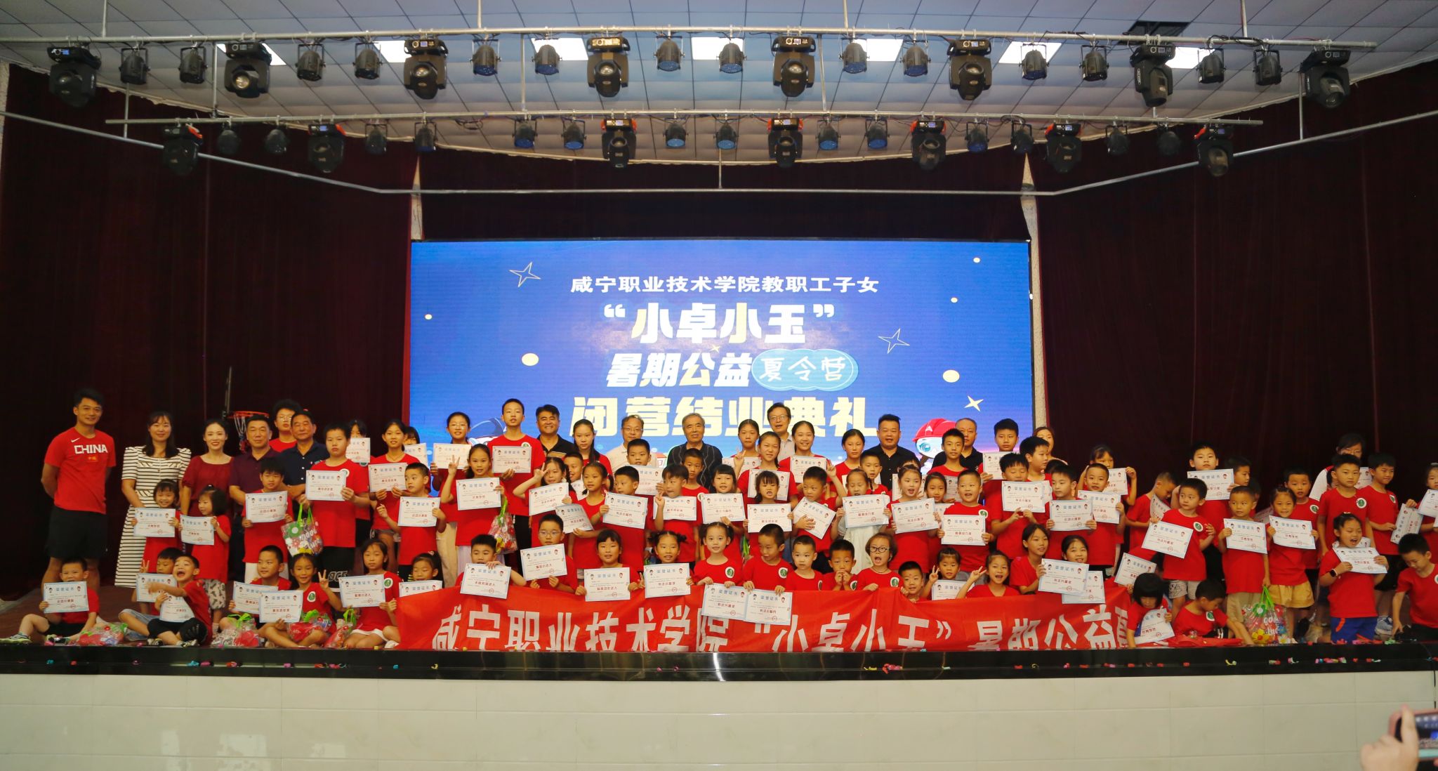 7月12日,学校教职工子女“小卓小玉”暑期夏令营在欢声笑语中圆满结营。校党委委员、组织部长曾志,校关心下一代工作委员会领导李军持等出席结营仪式并颁奖,学校教职工及子女200余人员参加了结营仪式。