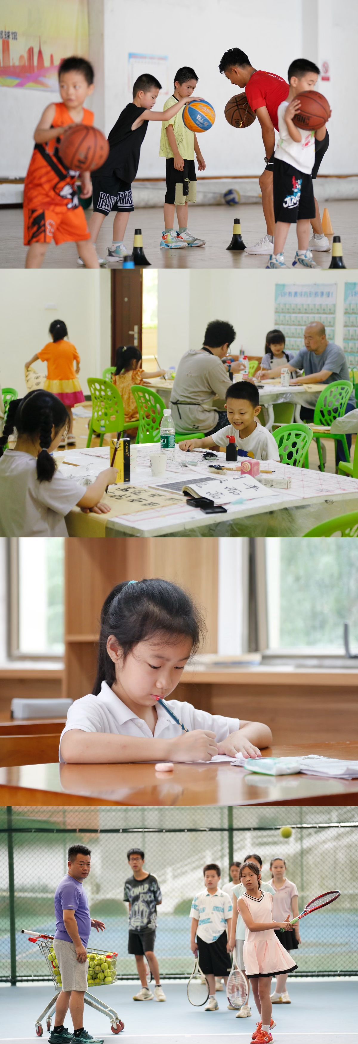 为帮助教职工解决后顾之忧,丰富教职工子女暑期生活,让小朋友们度过一个难忘而快乐的暑假,校工会、校关工委联合相关部门举办了学校首届“小卓小玉”教职工子女暑期公益夏令营,共有105名教职工子女参加了篮球、网球和软笔、硬笔书法共7个训练营的学习。孩子们在烈日下挥洒汗水,在挑战中磨练意志,在轻松愉快、活泼有爱的学习氛围中渡过了难忘的二个星期。小朋友们与老师一起,在烈日下挥洒汗水,在挑战中磨练意志。他们学会了团结协作,学会了坚持不懈,收获了成长,更收获了快乐与自信。