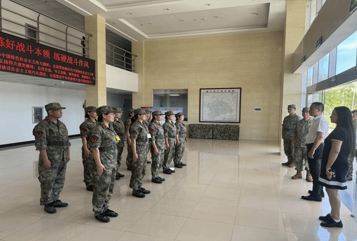 按照咸宁军分区、咸安区人武部的年度民兵训练计划,我校心理疏导排开展为期12天的封闭训练。7月22日上午,校党委副书记华先宙同志带队前往咸宁市民兵训练基地,与咸安区人武部领导陈汇中同志一同看望慰问我校参训同志。