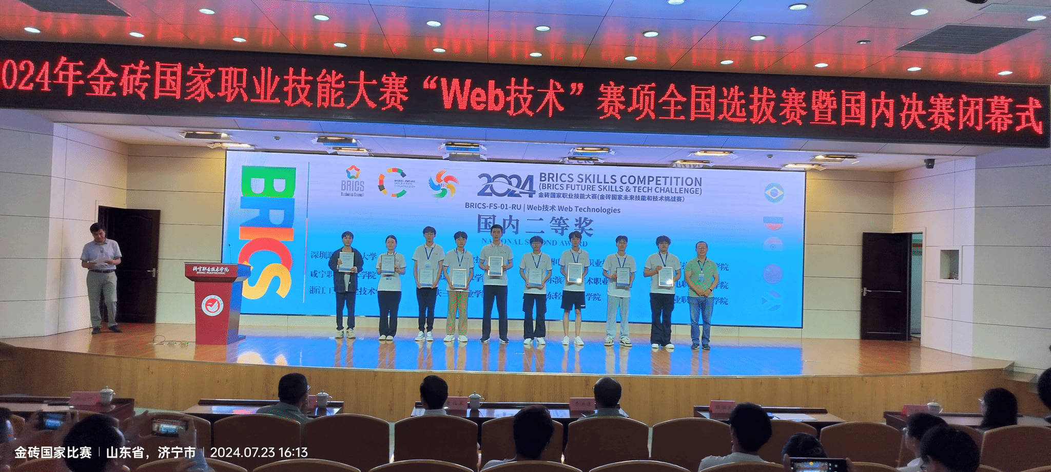 7月22日-23日,2024金砖国家职业技能大赛“WEB技术”赛项全国选拔赛暨国内决赛在山东济宁职业学院成功举办!我校信息工程学院2023级计算机应用技术专业学生蔡绍赋不畏强手,奋勇拼搏,取得第8名的好成绩,荣获二等奖。
