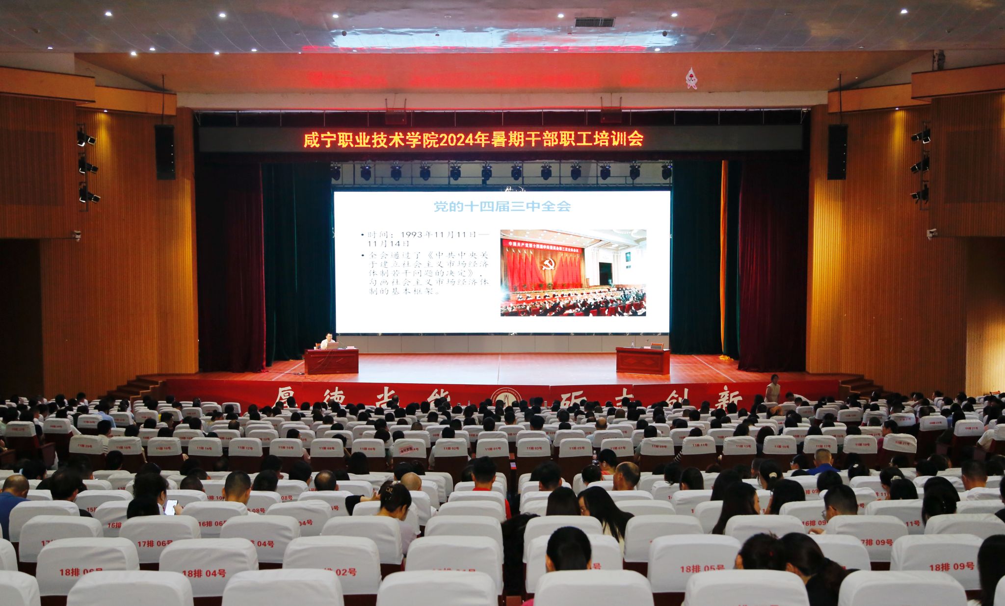 8月26日上午,学校“学习贯彻党的二十届三中全会精神,推动学校‘新双高’建设”2024年暑期干部职工培训大会在科学会堂举行,特邀校外专家作专题辅导。学校党委书记高焕清主持大会并讲话。全体在咸校领导、全校教职工参加学习。