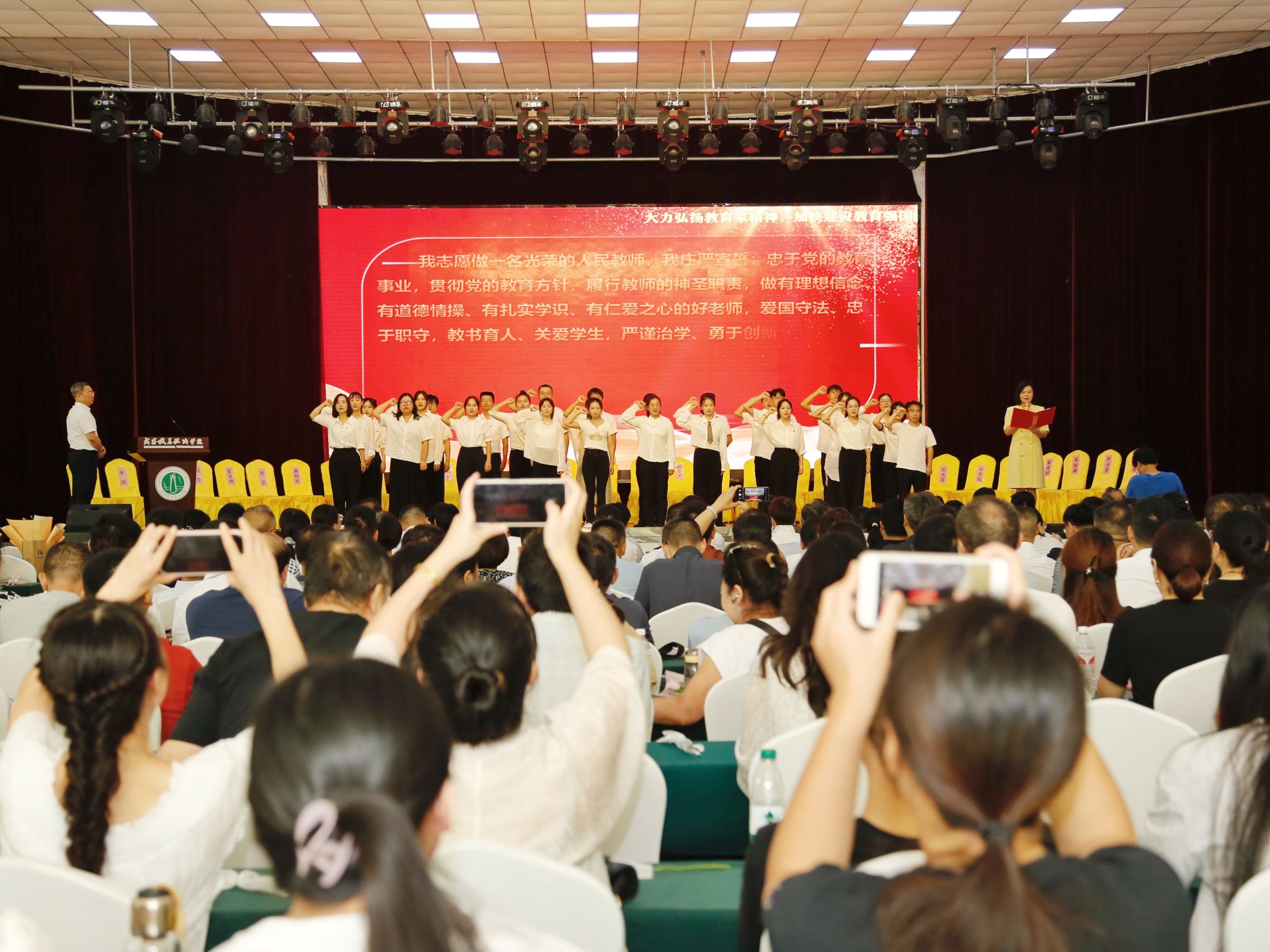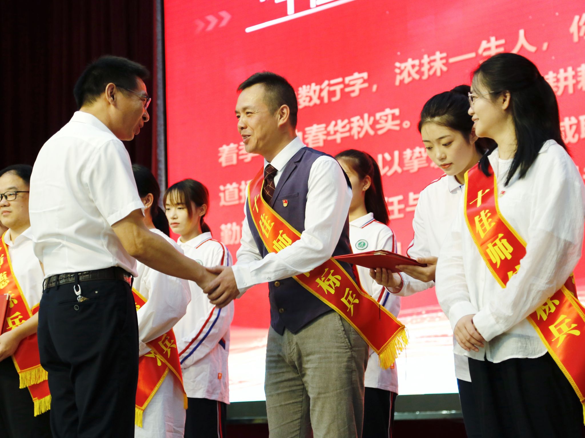 师情殷殷,秋景湛暖;师德馨馨,木樨芬芳。为庆祝第40个教师节,10日上午,我校举行教师表彰大会暨新教师入职仪式。校党委书记高焕清出席并讲话,校长陈红卫主持大会。全体校领导,副科级及以上干部、教师代表、新入职教师参加大会。