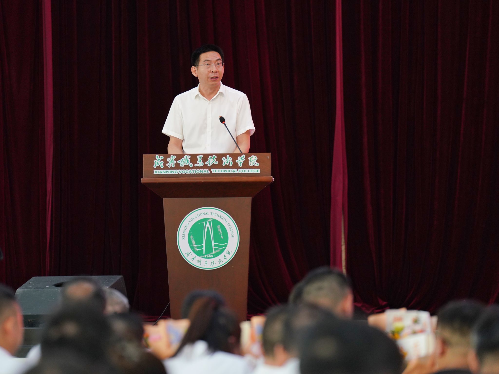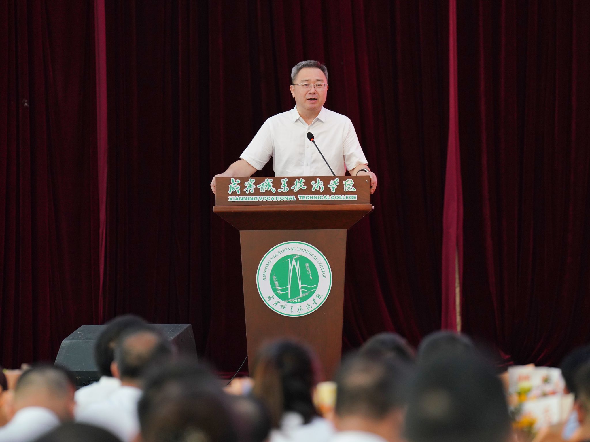 高焕清强调,全体教职员工要厚植“天下兴亡,匹夫有责”的“大情怀”。将个人发展需求与铸魂育人的历史使命有机结合,把个人命运与爱国情怀深度相融不断加强理想信念教育,加强思想政治引领。要身正为范,争做学生“引路人”。争做四有好老师,深化“三全育人”的协同机制,推动师德师风建设常态化、规范化,发挥先进典型的榜样引领作用,激励广大教师从榜样中汲取力量。要勤学笃行,练就“真功夫”。主动适应职业教育改革的需要,主动参与“双百工程”、“青蓝工程”,主动适应职业教育数智化转型的需要,主动服务地方经济社会发展,打造产学研用合作平台、推动成果转化落地等,创建职业教育“金师”品牌。