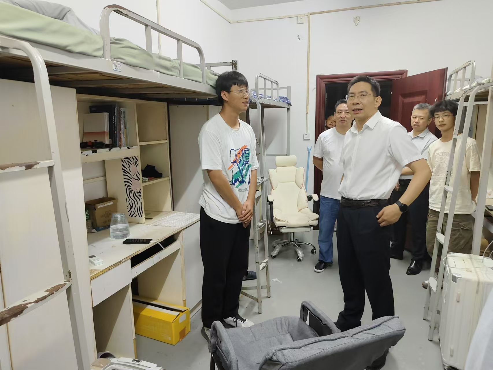 在学生寝室,高焕清仔细查看了寝室的环境,对学生行李箱存放不便的问题,要求相关部门迅速解决。他关切地询问同学们的学习、生活情况,要求学工、总务等部门要切实帮助新生尽快适应大学生活,嘱托本地的同学要更多照顾外地的同学,让他们感受到家的温暖。高焕清还在与同学们的交流中分享了自己的学习和工作经历,鼓励他们努力学习、勇于实践,多走出寝室,积极参与校园活动,不断提升自己的综合素质和能力水平。