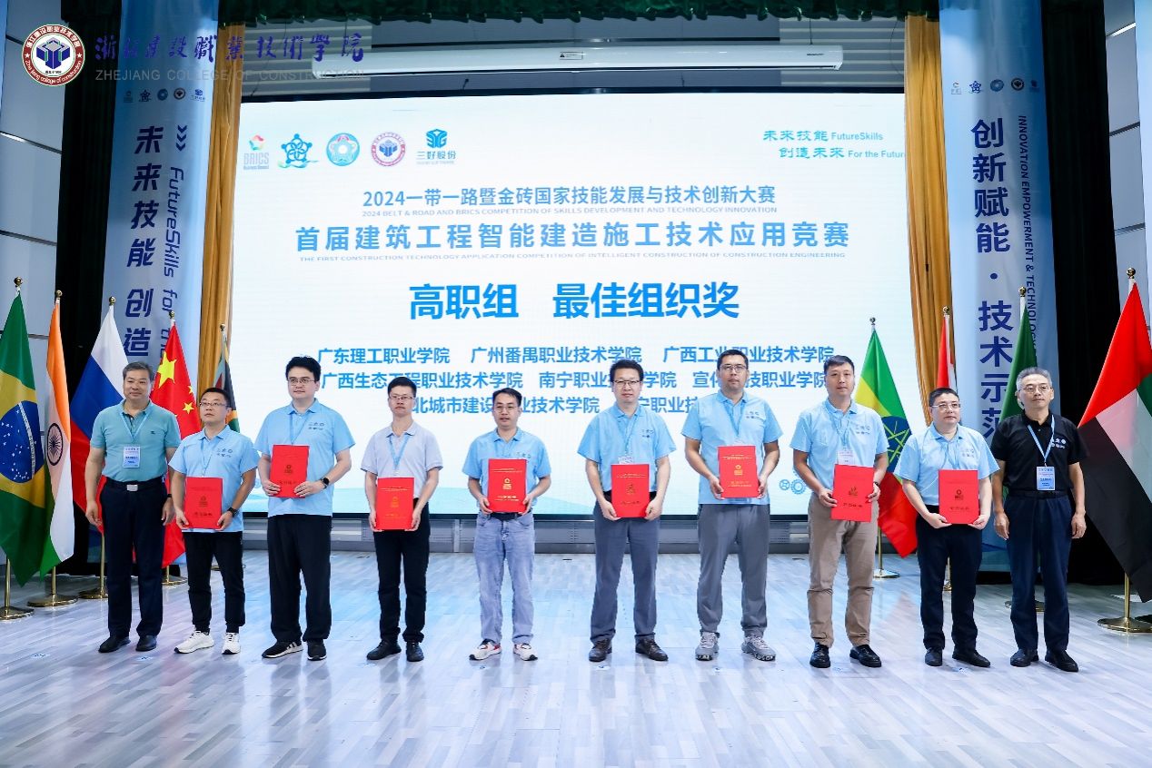 9月26-28日,2024“一带一路”暨金砖国家技能发展与技术创新大赛建筑工程智能建造施工技术应用赛项全国总决赛在浙江建设职业技术学院成功举办!我校建筑学院选手沈志诚、袁凯文获高职组一等奖,陈凯、洪迪甫获优秀指导教师,我校获最佳组织奖。