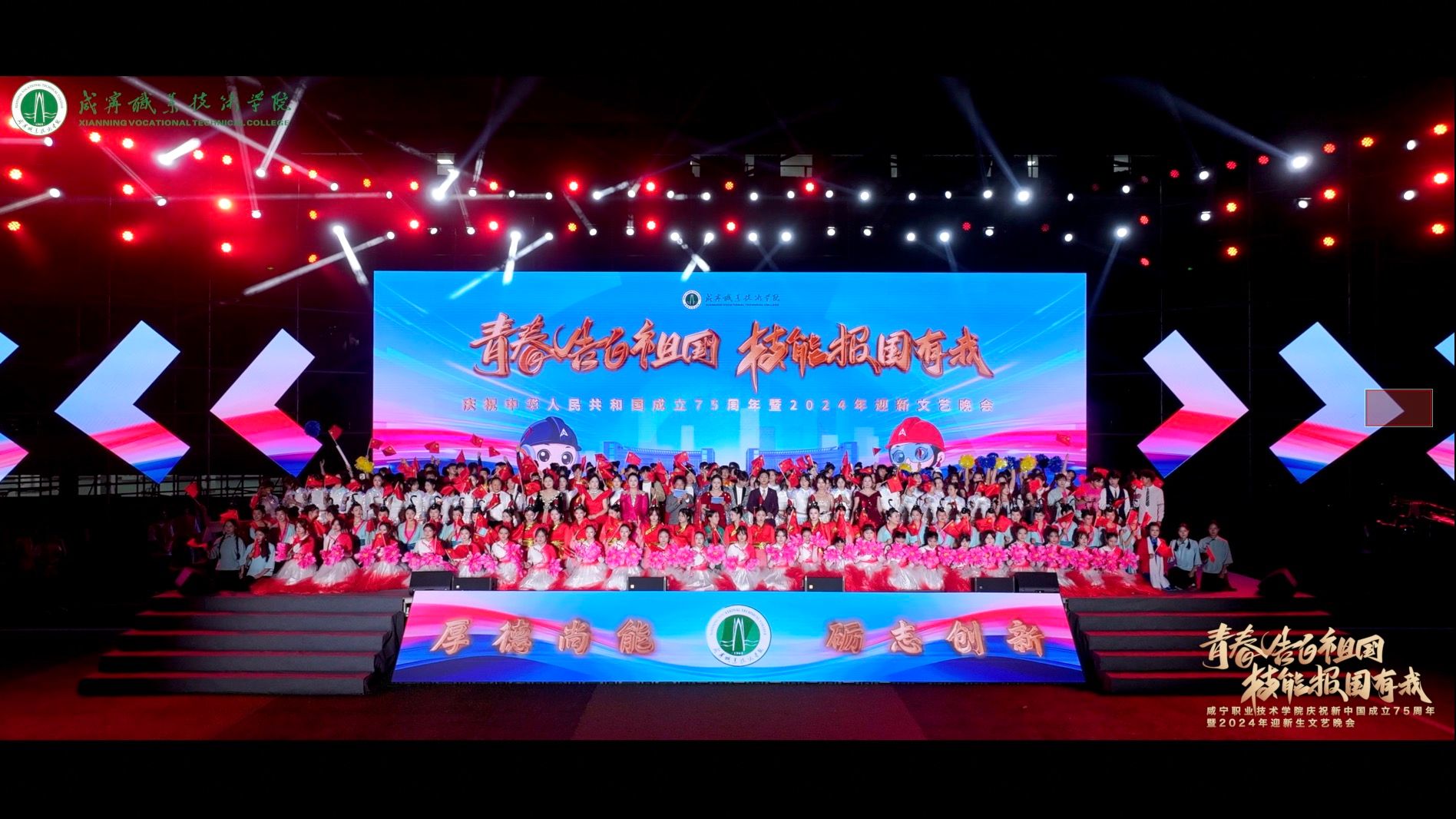 9月28日晚,“青春告白祖国 技能报国有我”77779193永利官网庆祝中华人民共和国成立75周年暨2024年迎新生文艺晚会在田径运动场举行,2024级全体新生共同观看晚会。