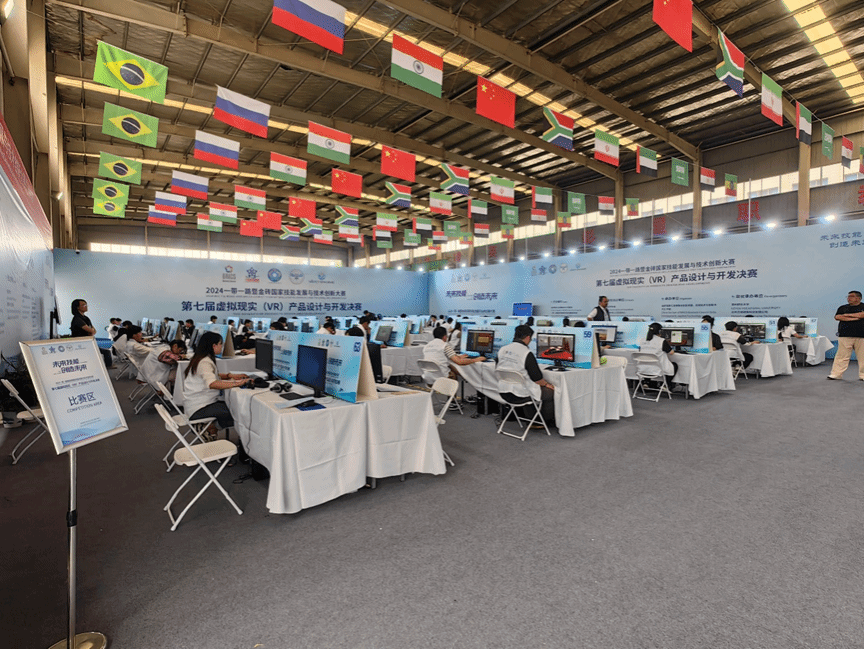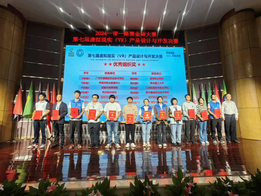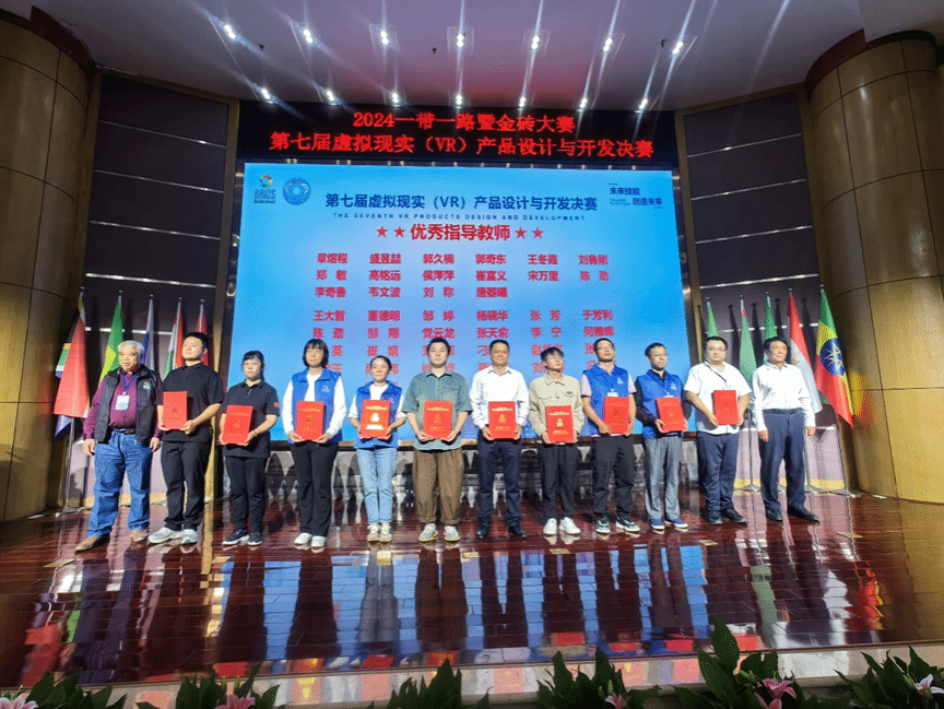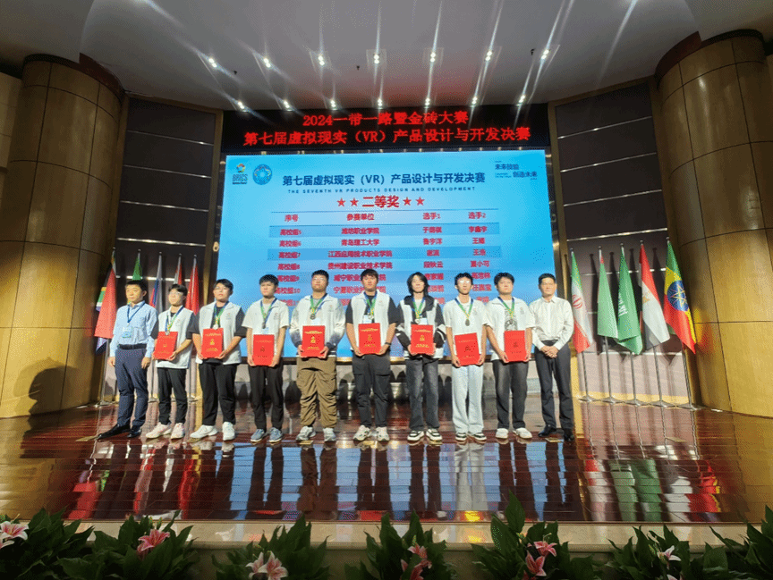 10月12日-15日,2024一带一路暨金砖国家技能发展与技术创新大赛之第七届虚拟现实(VR)产品设计与开发决赛在鄂州职业大学成功举办。我校工学院2023级机械设计与制造专业学生唐家耀、高浩林奋勇拼搏,荣获二等奖(银牌)。工学院教师夏红兵、钟昌清荣获优秀指导教师。