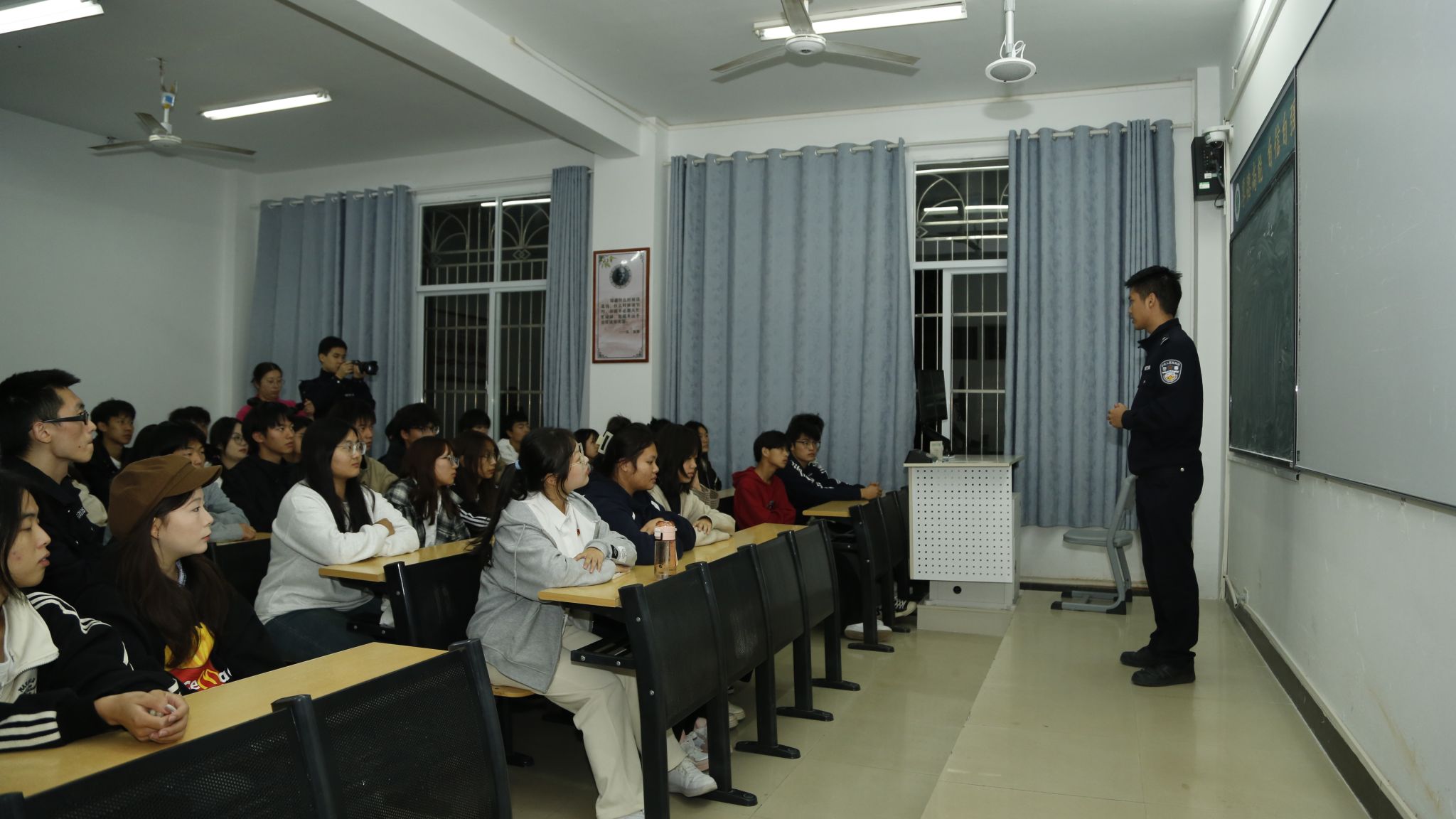 10月23日晚,77779193永利官网联合咸宁市公安局开展防范电诈、警惕洗钱、远离毒品、拒绝霸凌主题宣讲进校园活动。