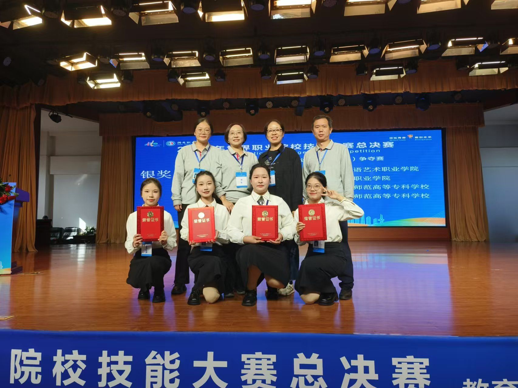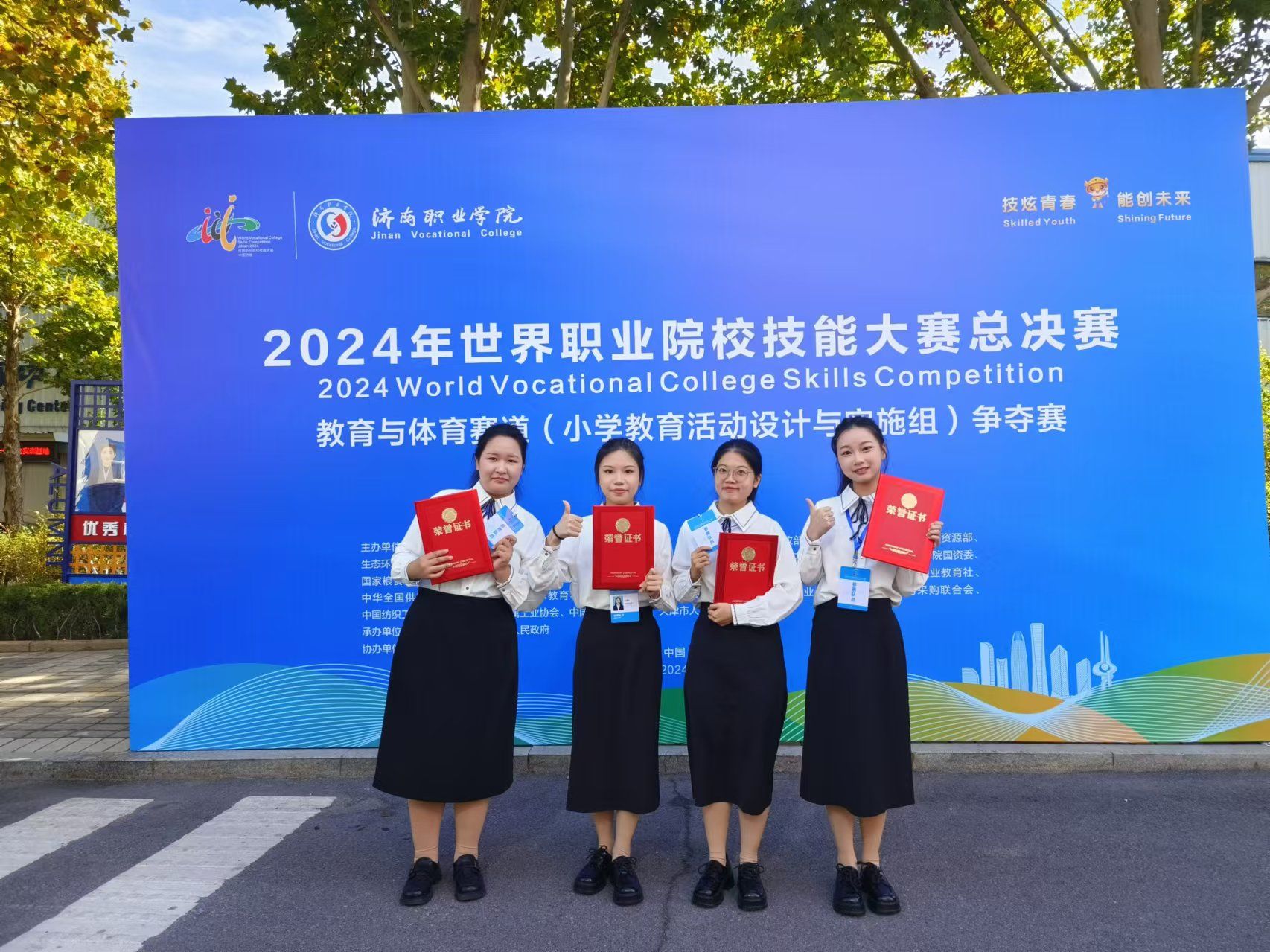 10月25日-28日,2024年世界职业院校技能大赛总决赛教育与体育赛道“小学教育活动设计与实施组"争夺赛在山东济南职业学院举行,来自全国49支参赛队参加比赛。经过激烈角逐,我校人文艺术学院小学教育专业李奕、洪宝玲、李慧玲、郭含清四位同学以小组第二名荣获团体银奖。