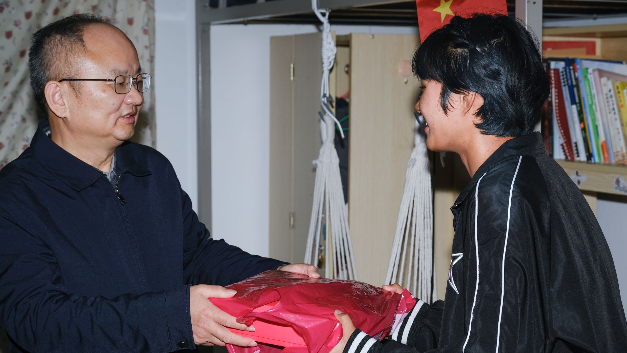 走访期间,张兴国与同学们亲切交谈,了解同学们的家乡、家庭情况和专业、入校感受等,并就学生提出的生活和学习方面的问题进行解答。他指出,要注意宿舍用电防火、人身财产安全,强化安全意识和自我保护意识,遇到困难及时和辅导员、班主任老师沟通交流。在得知同学们都能积极融入课堂、参加校园活动后,他还向同学们提出殷切期望,希望同学们坚定信心,努力学习专业知识,建立和谐友好的人际关系,养成科学的作息习惯和健康的生活习惯。他勉励大家要珍惜大学时光,刻苦学习知识,做好人生目标规划,通过不懈奋斗去实现梦想,在新的环境中认真学习、健康成长,争做担当民族复兴大任的时代新人。