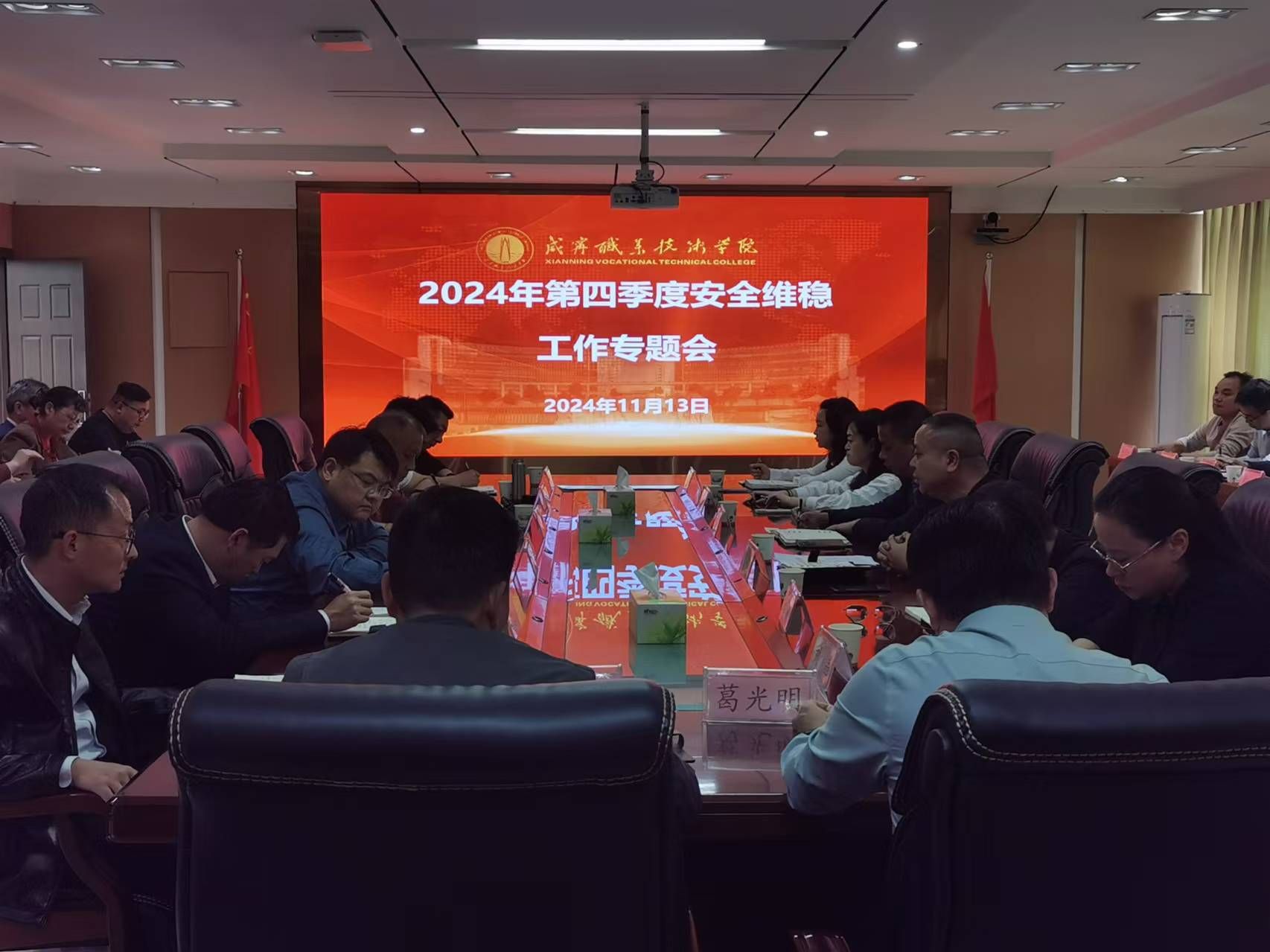 11月13日下午,我校在厚德楼409会议室召开第第四季度安全维稳工作专题会。校党委副书记华先宙出席会议,各行政处室负责人、二级学院党总支书记(直属党支部书记)参加会议。