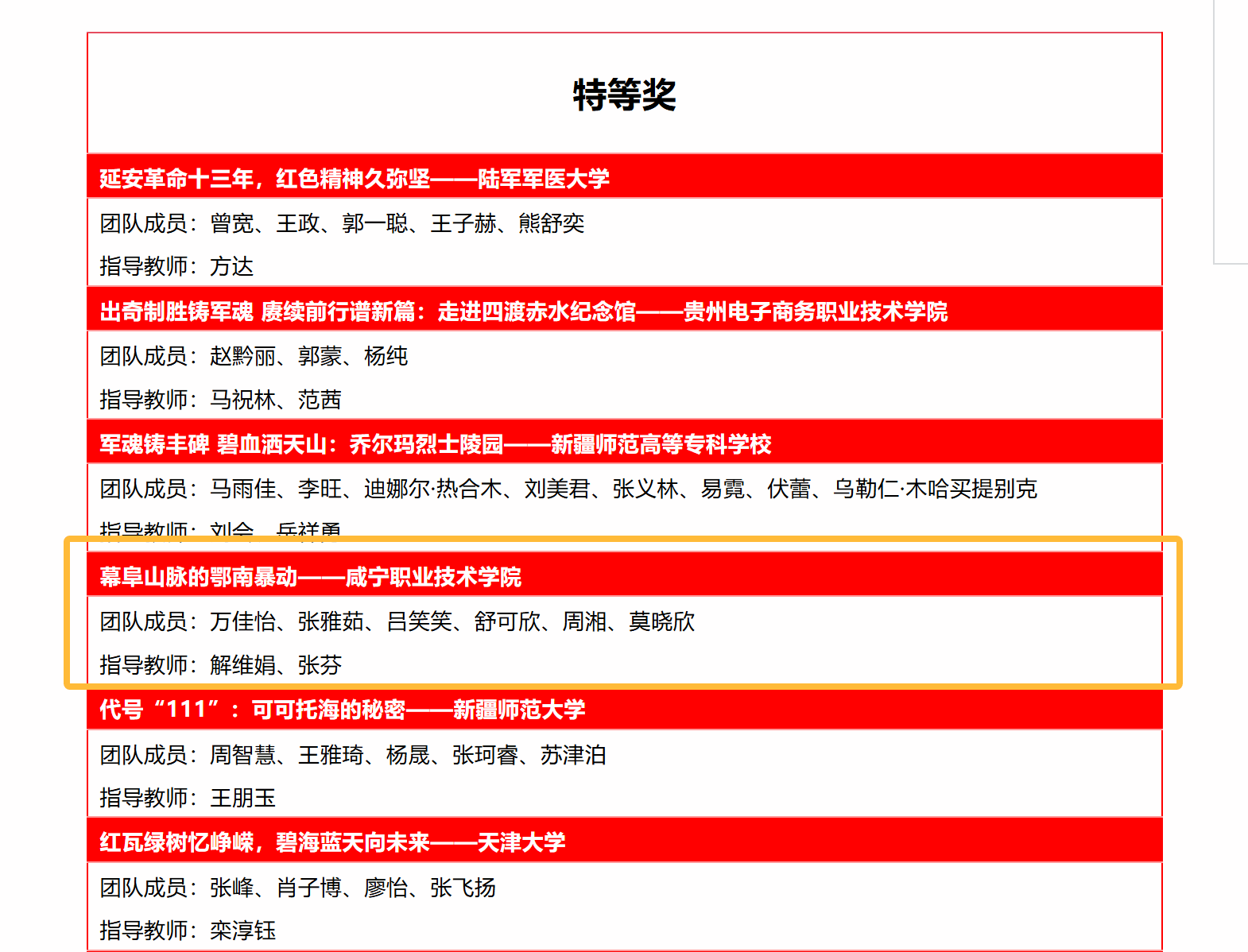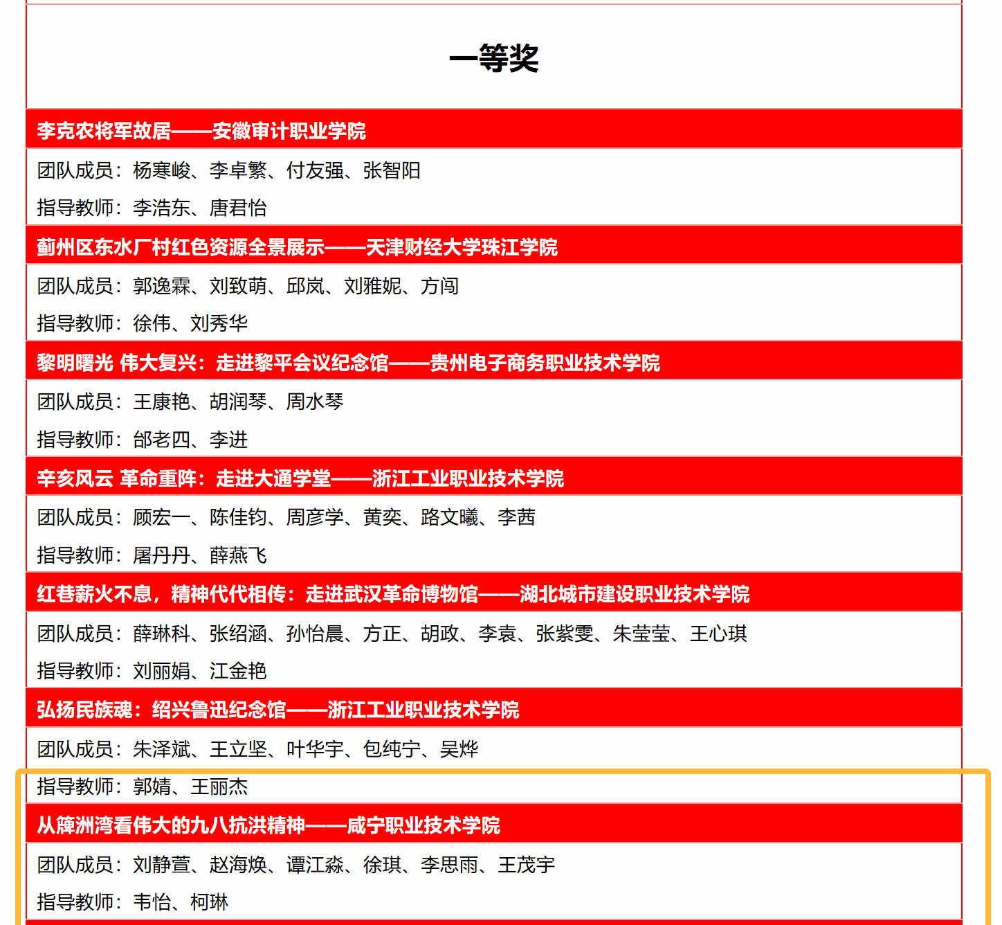 咸宁职院师生作品力夺特等奖1项和一等奖1项,这也是继2023年12月我校思政课教师王金等指导的作品《何功伟烈士纪念园》获“第二届全国大学生红色全景资源创意展示大赛”一等奖之后,再一次获得殊荣!