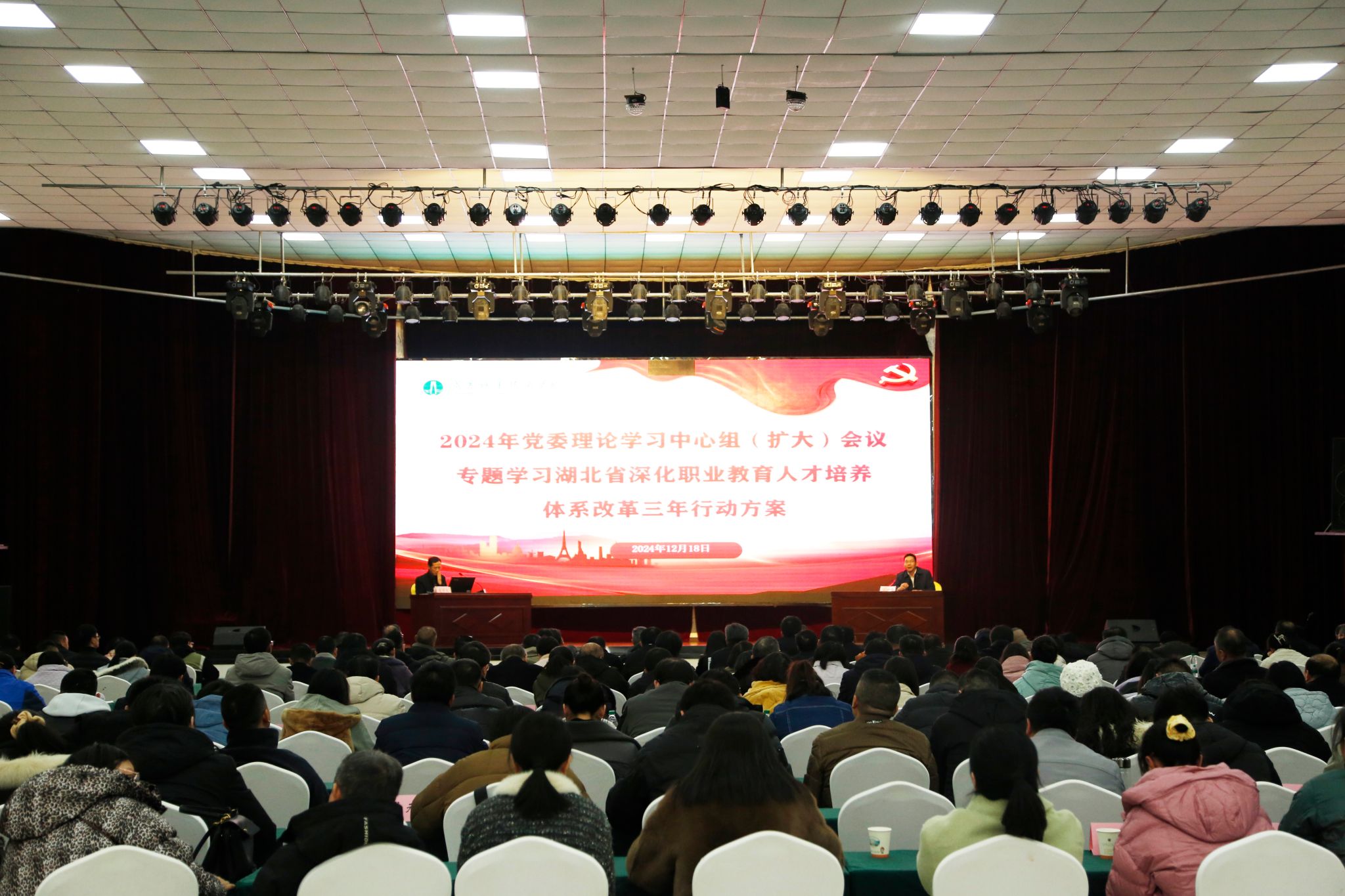 12月18日下午,我校召开2024年党委理论学习中心组(扩大)会议,特邀湖北开放大学(湖北科技职业学院)党委常委、副校长夏学文教授来校作专题辅导报告,进一步解读《湖北省深化职业教育人才培养体系改革三年行动方案》文件精神。校党委书记高焕清出席并主持会议。
