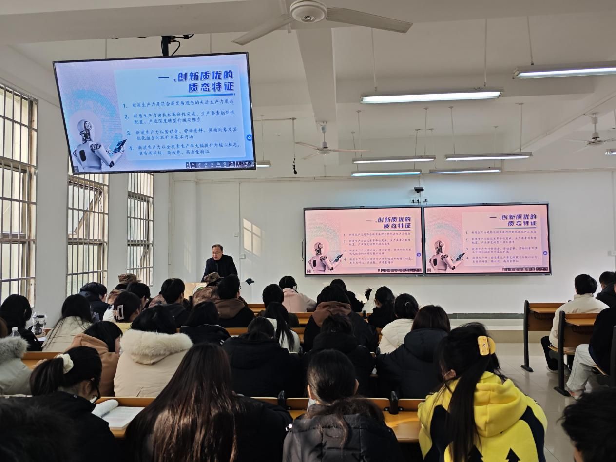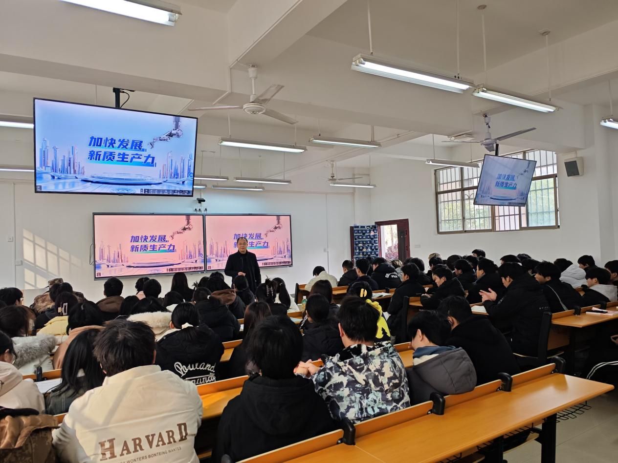 2024年12月31日,校党委委员、宣传部(统战部)部长曾志聚焦“加快发展新质生产力”,为2024级计算机网络技术专业学生带来了一堂具有深度与温度的形势与政策课。