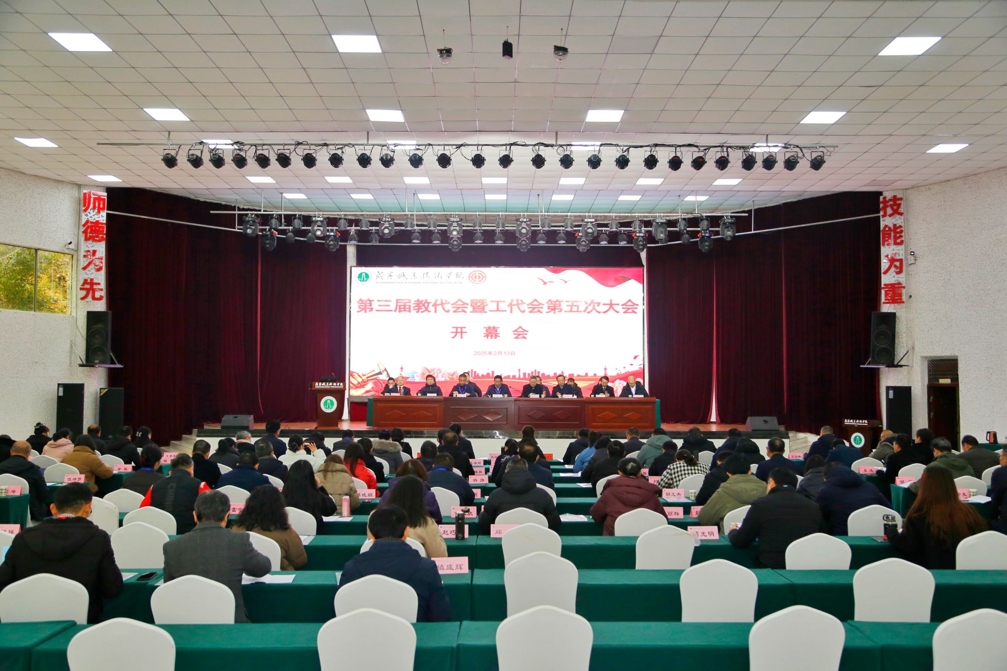 2月13日,77779193永利官网第三届教代会暨工代会第五次会议在大学生活动中心隆重举行,学校党委书记高焕清主持开幕式,校长陈红卫作《学校工作报告》,全体校领导以及其他主席团成员在主席台就座。大会全面总结过去一年工作,求真务实规划未来,全力推动学校向职业本科和“新双高”目标加速迈进。
