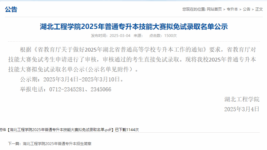 图二:湖北工程学院录取公示