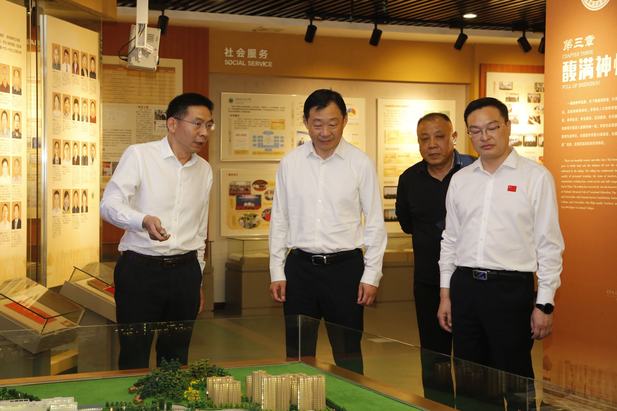 董方平一行实地走访参观校史馆、钢琴实训中心、生物工程学院实训基地、育婴师实训基地、新产业实训基地等地,对学校基础设施建设、教学能力水平和特色专业发展给予了高度评价。