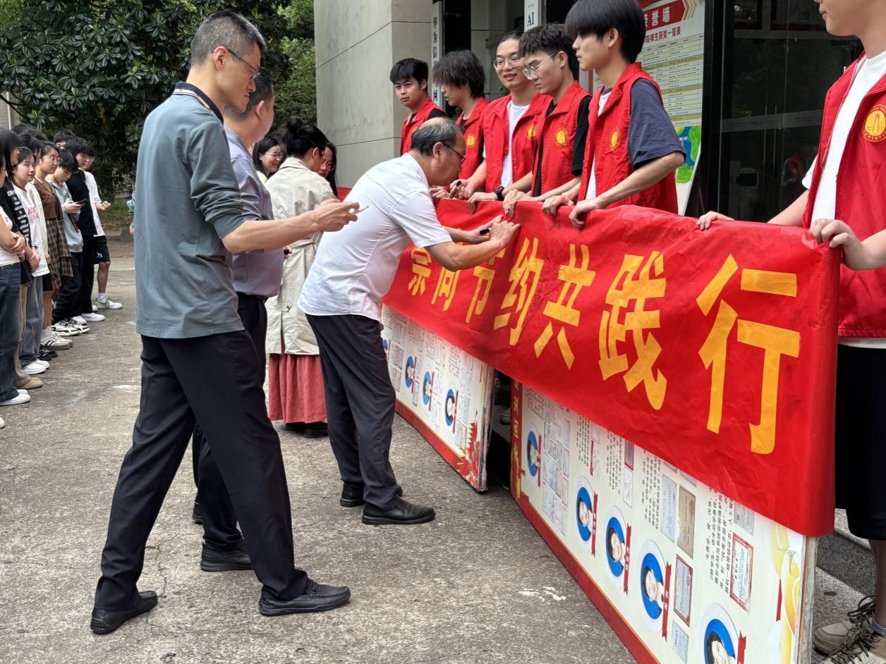 信息工程学院还举行了“践行节约”的签名活动。“反对浪费我先行,崇尚节约共践行”的红色横幅醒目亮眼。校党委委员、宣传部(统战部)部长曾志,信息工程学院班子成员及辅导员率先在横幅签名示范。在老师们的带动下,同学们热情高涨、有序排队签名,坚定表达践行节约决心。
